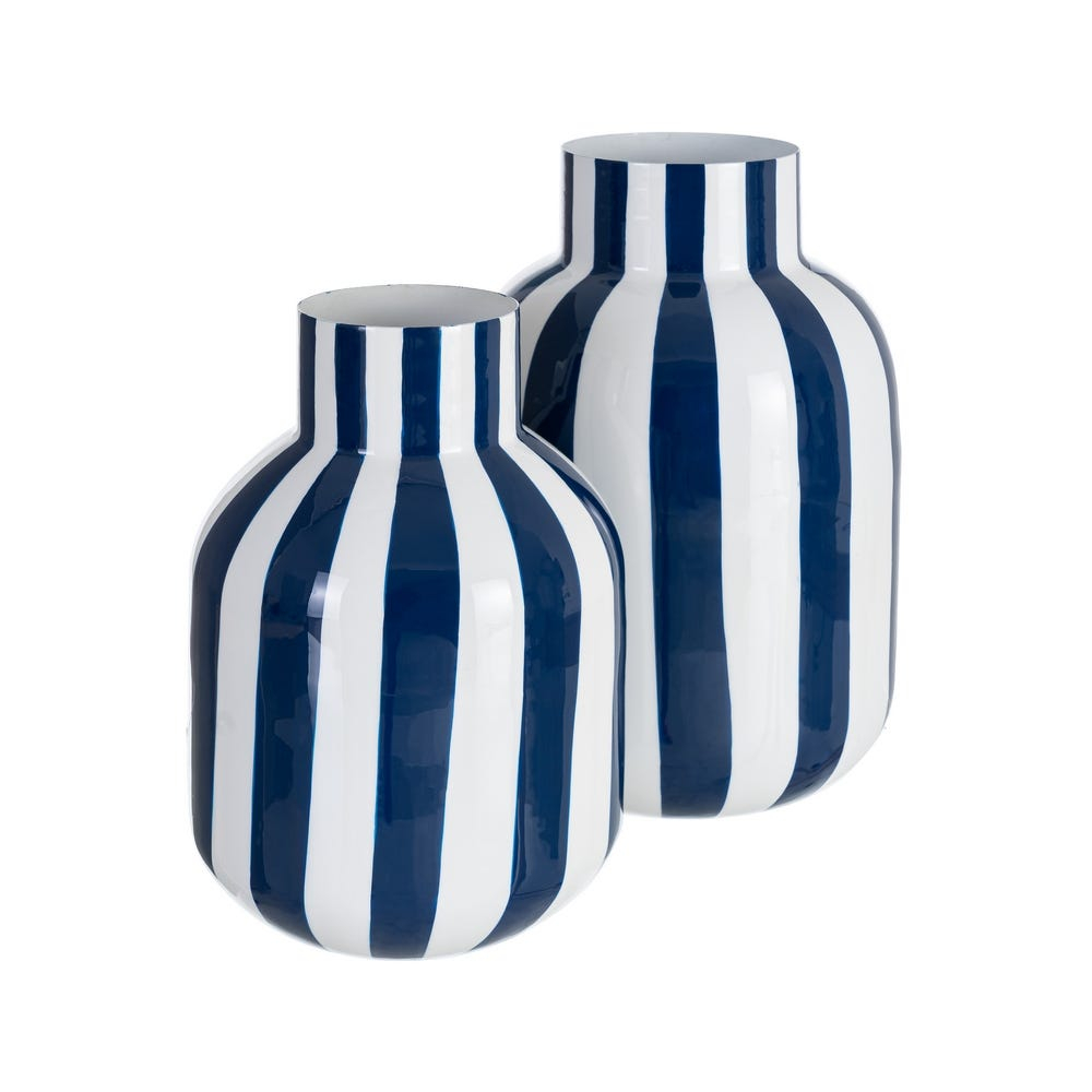 IXIA Vază decorativă din metal cu dungi verticale alb și albastru și siluetă alungită 18 x 18 x 30 cm
