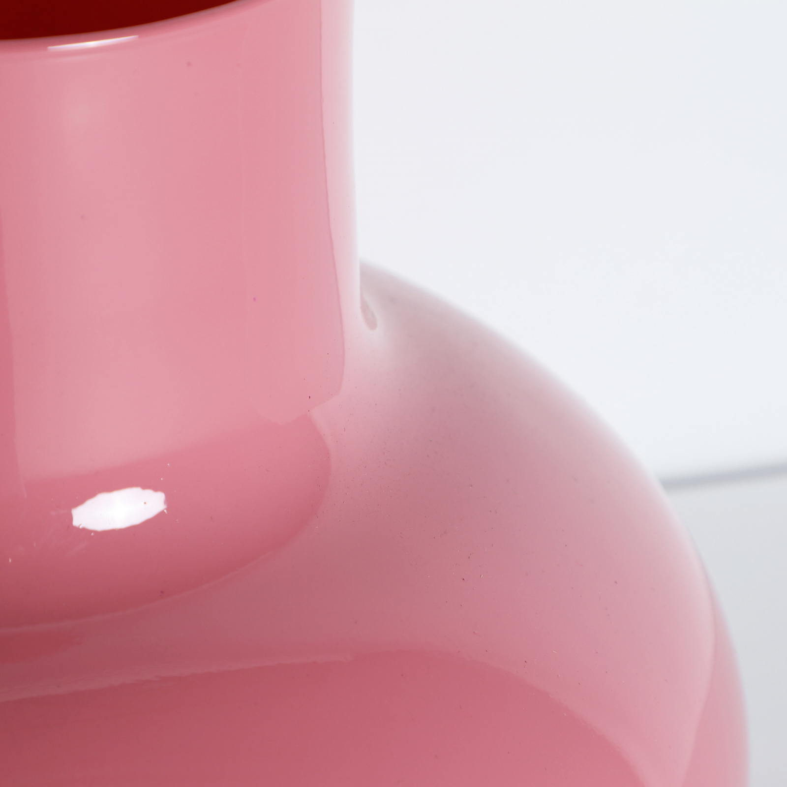 Cu o siluetă lată și un gât îngust ce amintește de formele organice din natură, această vază decorativă din sticlă roz adaugă un plus de rafinament și calm în orice amenajare interioară. Este ideală pentru spații care invită la relaxare, introspecție și armonie vizuală.