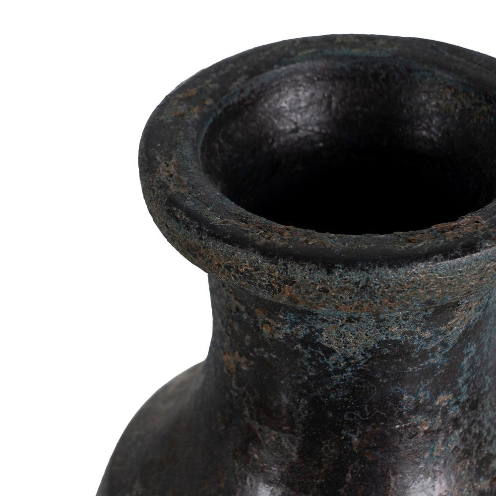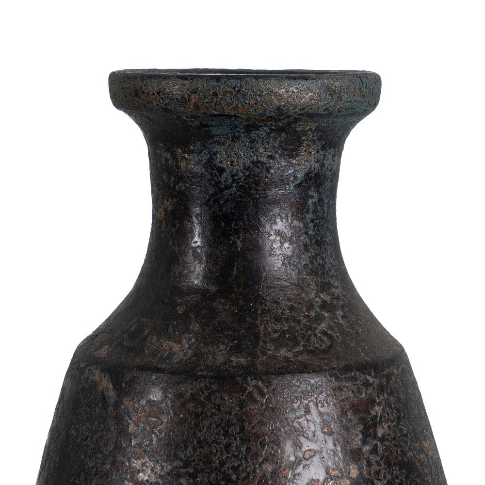 Suprafața vazei are o textură plăcută și prezintă variații de culoare care adaugă profunzime și un aspect natural. Nuanțele închise sunt evidențiate subtil de zone mai deschise, oferind un efect vizual discret și elegant.