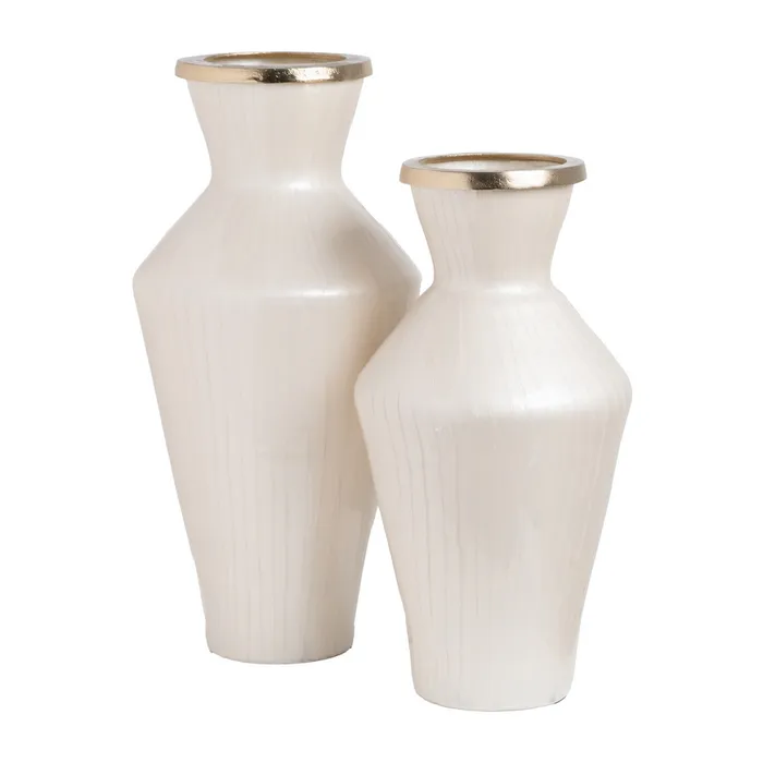Vază elegantă cu combinație armonioasă de alb și auriu. Perfectă pentru aranjamente florale spectaculoase sau ca piesă decorativă statement în amenajări interioare sofisticate.
