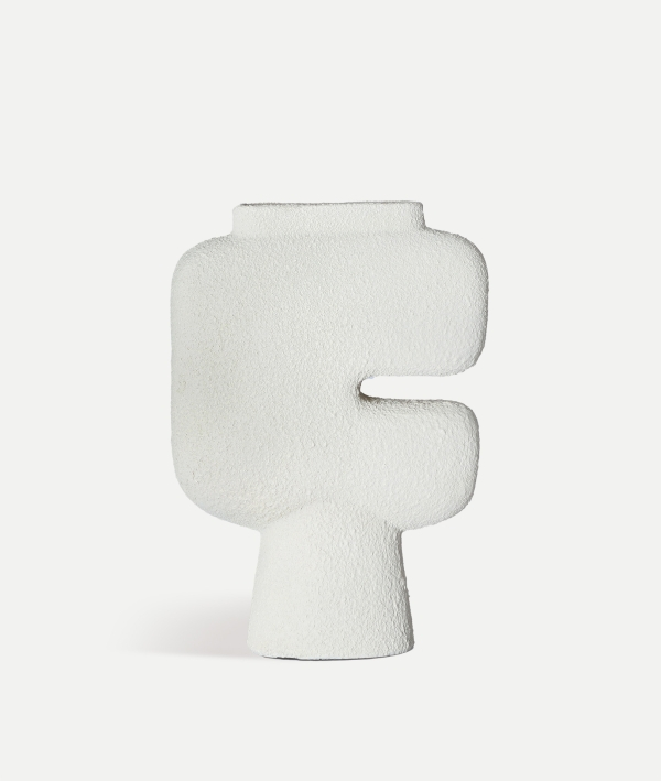 Vaza decorativă Niveo de la KODU se remarcă prin forma sa sculptural-organică și aspectul modern, definit de o textură rugoasă în nuanță albă pură. Este o piesă care emană simplitate contemporană și aduce un plus de lumină și rafinament oricărui spațiu.
