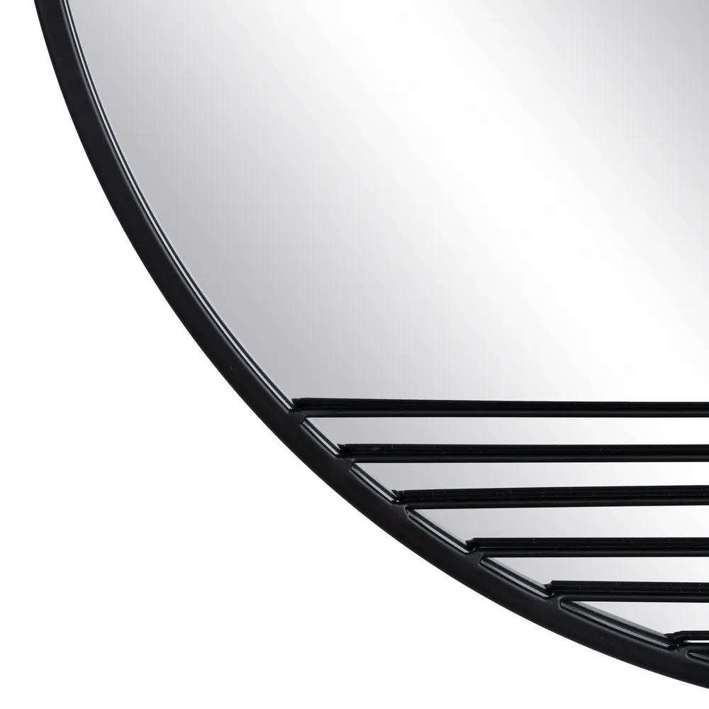Oglindă rotundă de perete cu ramă metalică neagră, ideală pentru amenajări moderne. Designul său minimalist adaugă luminozitate și senzație de spațiu în orice încăpere. Perfectă pentru holul de la intrare, living sau deasupra unei mese consolă, această oglindă oferă un accent decorativ rafinat și un plus de individualitate decorului.