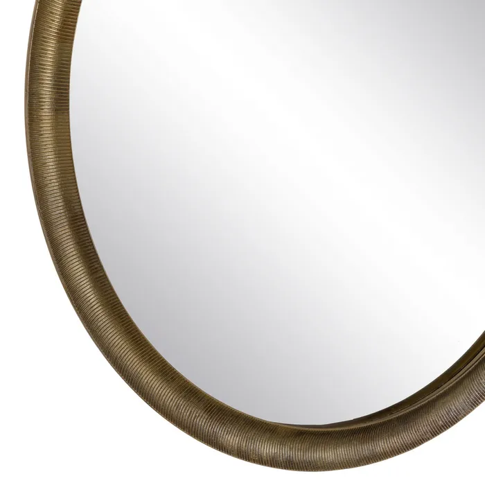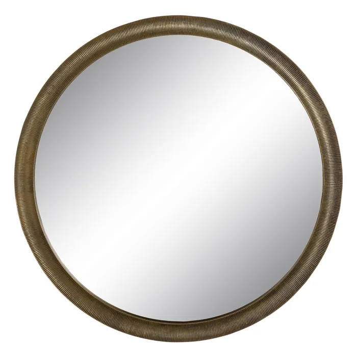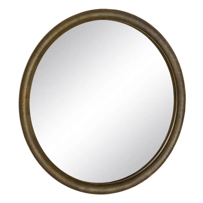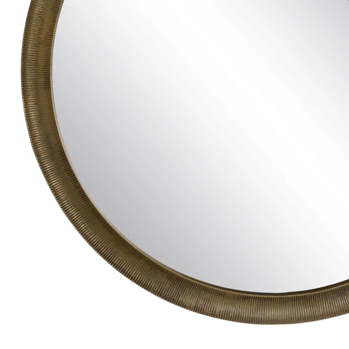 Oglinda rotundă cu ramă din aluminiu și finisaj auriu antichizat aduce un plus de sofisticare interioarelor moderne. Designul minimalist și forma circulară creează un punct focal elegant în orice cameră. Oglindă rotundă, decor modern, rafinament.