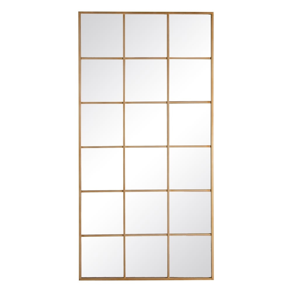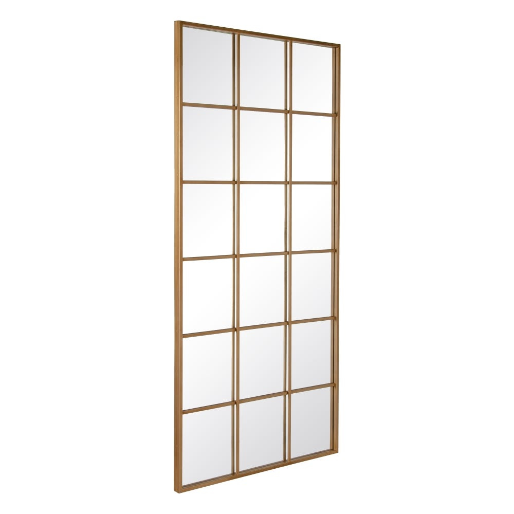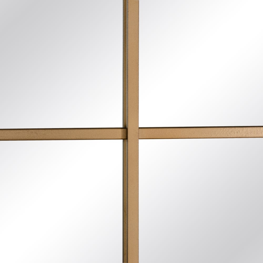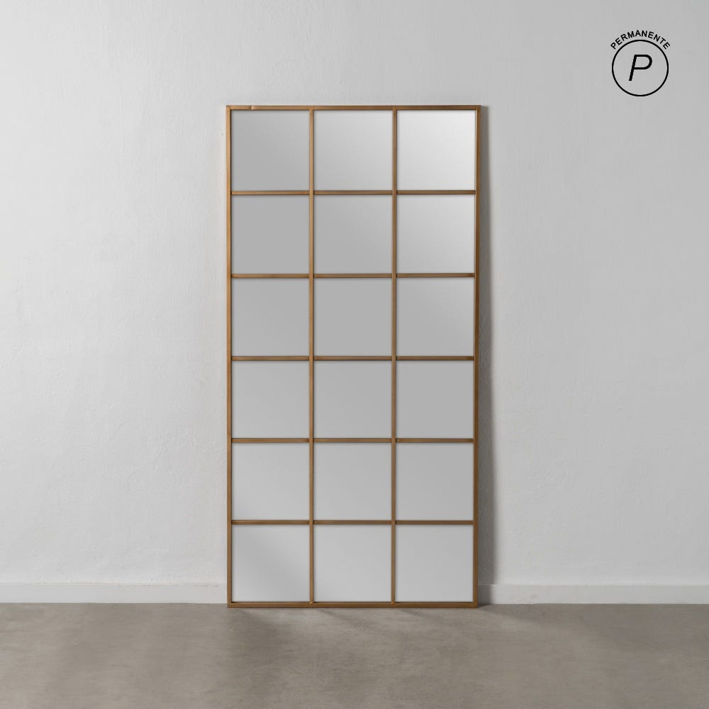 Oglinda verticală tip fereastră cu ramă aurie din metal este o piesă de decor elegantă și sofisticată, ideală pentru a aduce lumină și profunzime încăperii. Designul său dreptunghiular, împărțit în panouri tip fereastră, creează un efect vizual de spațiu mai aerisit și mai luminos, potrivit pentru living, hol sau dormitor. Rama subțire, cu finisaj auriu, adaugă un plus de rafinament și modernitate.