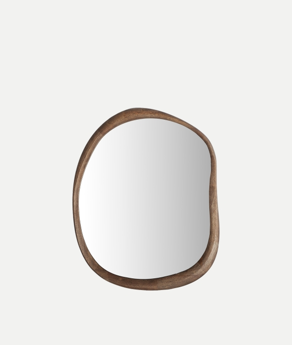 Designul asimetric al oglinzii LUBECA îi conferă un aspect sculptural, ce amintește de formele organice din natură. Este ideală pentru a adăuga profunzime și caracter într-un hol, dormitor sau living. Rama din lemn de cauciuc maro se remarcă prin textura naturală și tonurile calde, oferind un echilibru subtil între rustic și modern.