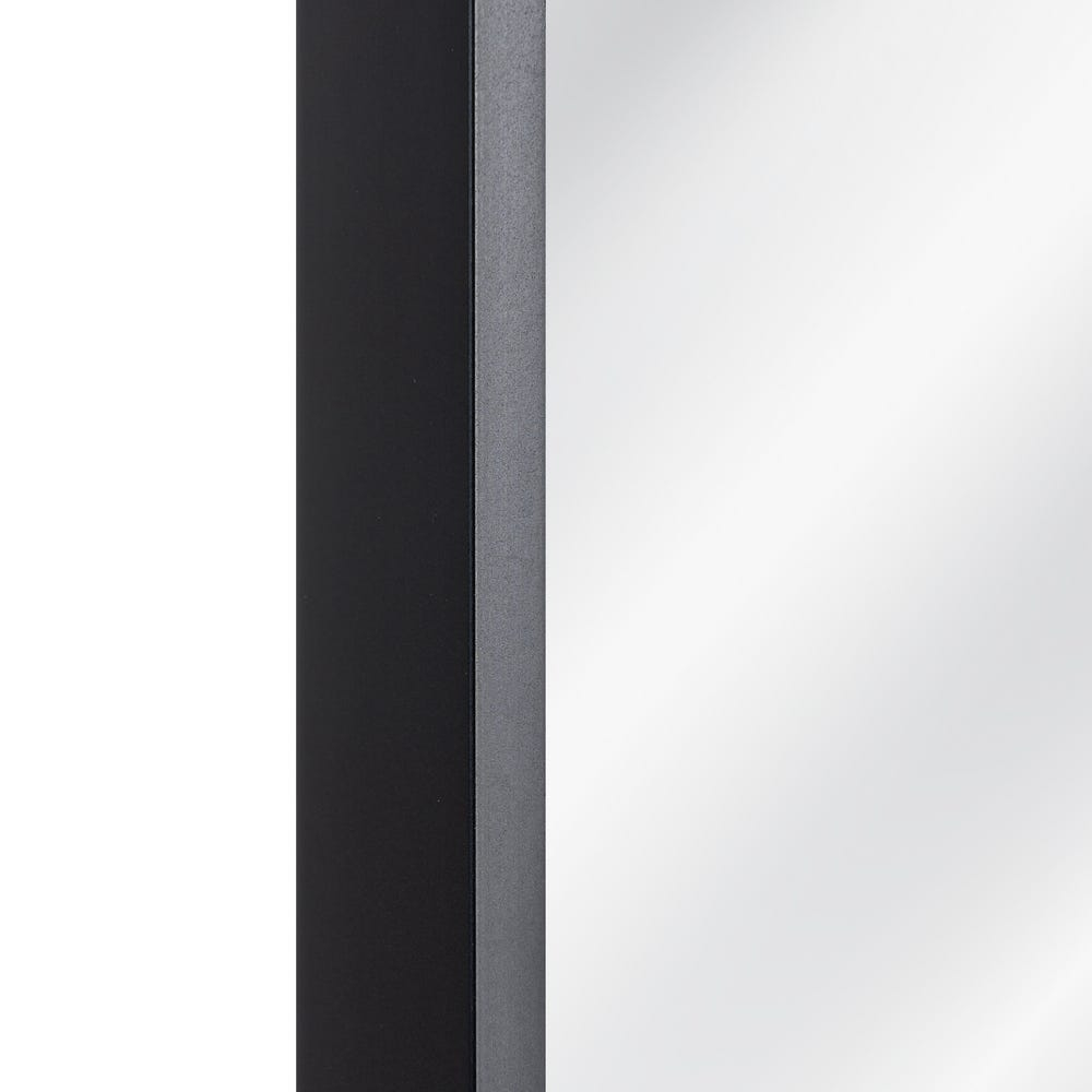 Rama este realizată din aluminiu negru, cu un profil subțire de 1,8 mm, care urmărește delicat linia oglinzii fără a încărca vizual piesa. Suprafața reflectantă este bine integrată în structură, oferind un aspect curat și precis, potrivit pentru interioare moderne sau minimaliste.