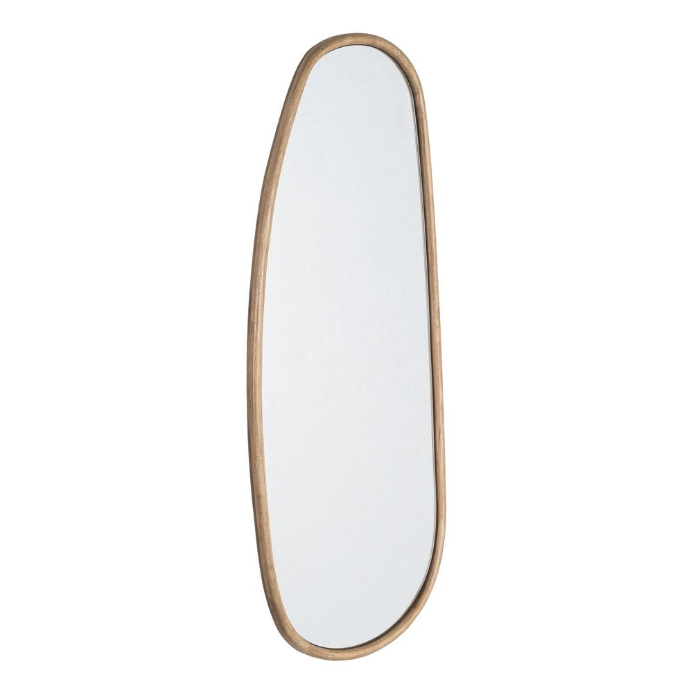 Această oglindă decorativă cu format vertical este concepută pentru interioare care pun accent pe materiale naturale și proporții alungite. Rama din lemn, cu contur fluid și formă organică, conferă piesei o prezență elegantă și calmă, potrivită pentru spații ample sau zone care necesită un accent vizual vertical.