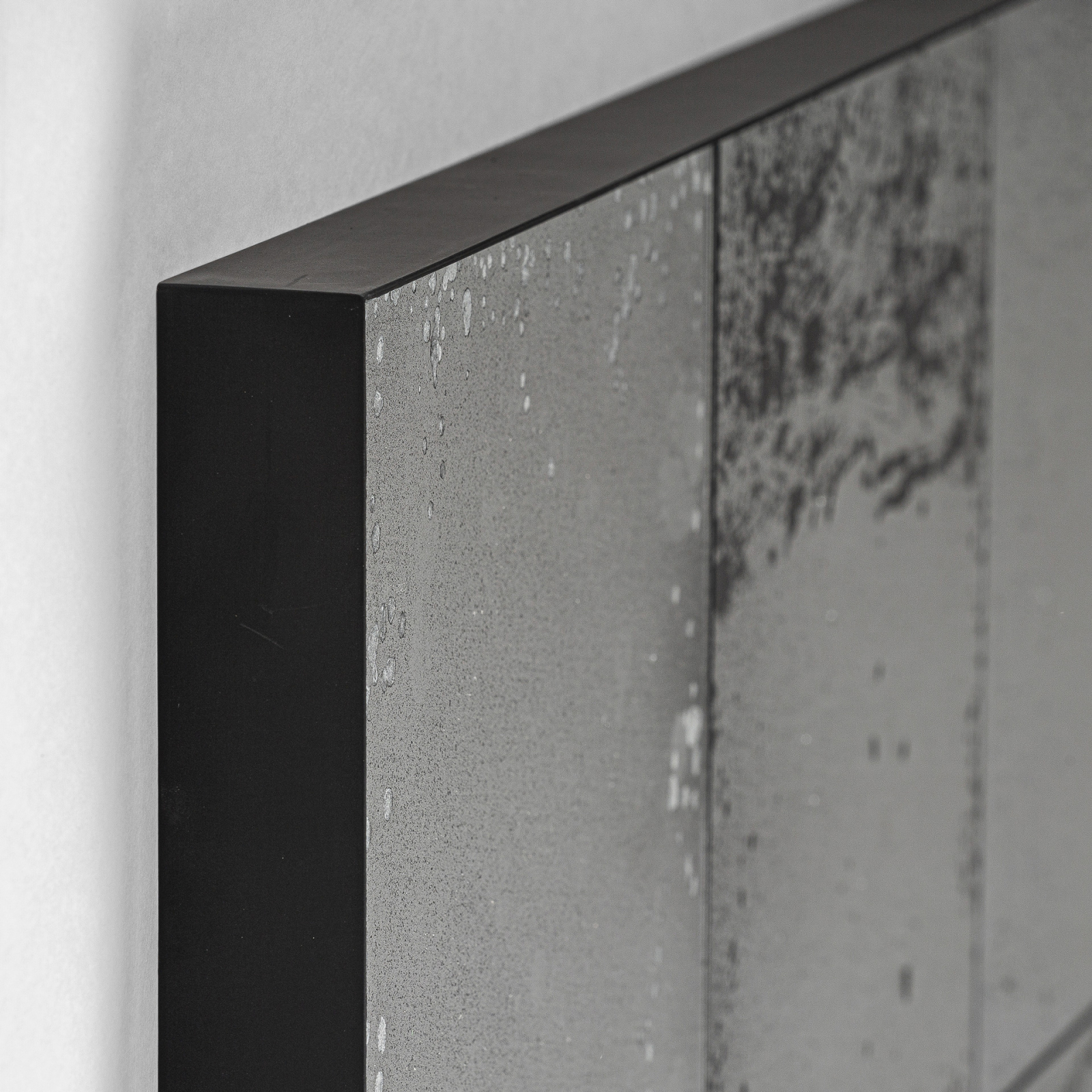 Suprafața este împărțită în mai multe segmente care creează un joc vizual dinamic și adaugă profunzime spațiului. Texturile variate din fiecare panou contribuie la un efect artistic, transformând oglinda într un punct focal care atrage atenția imediat.