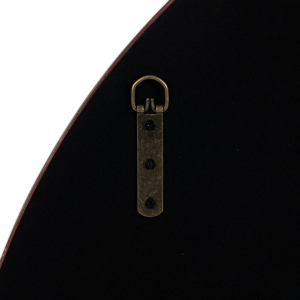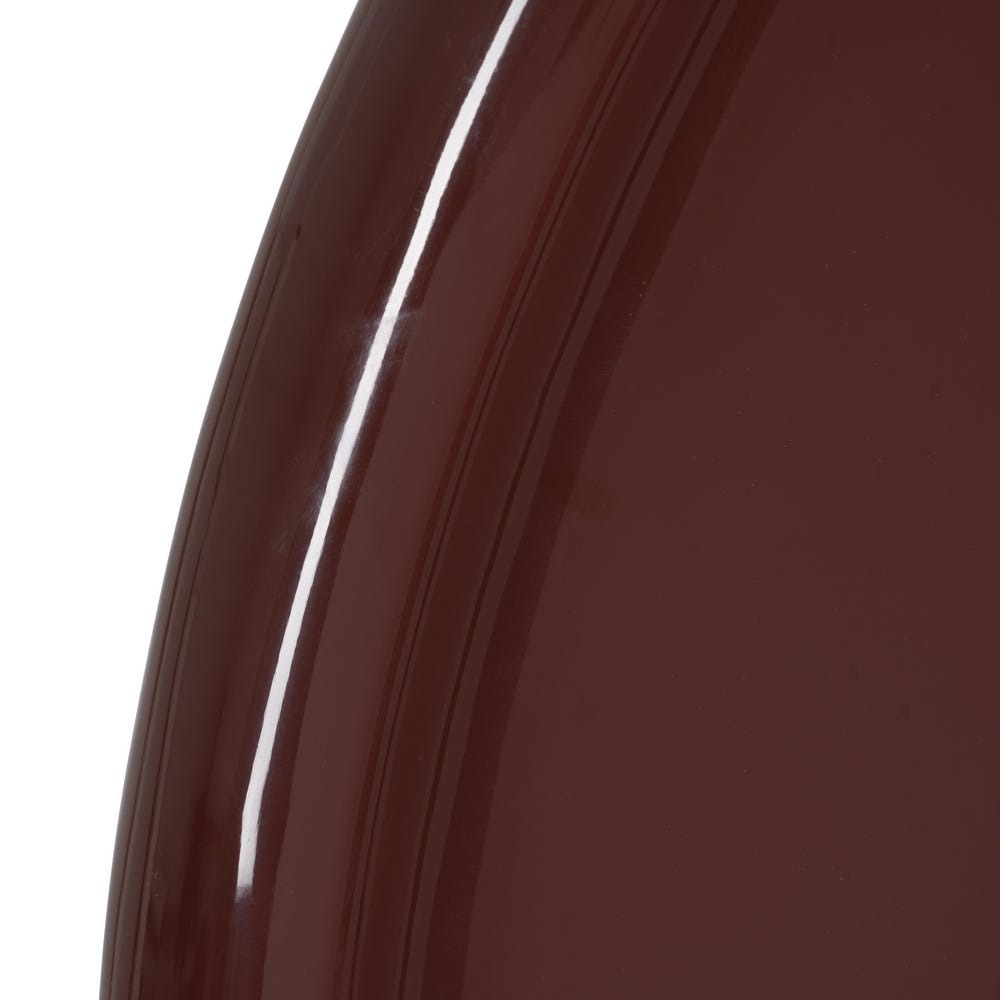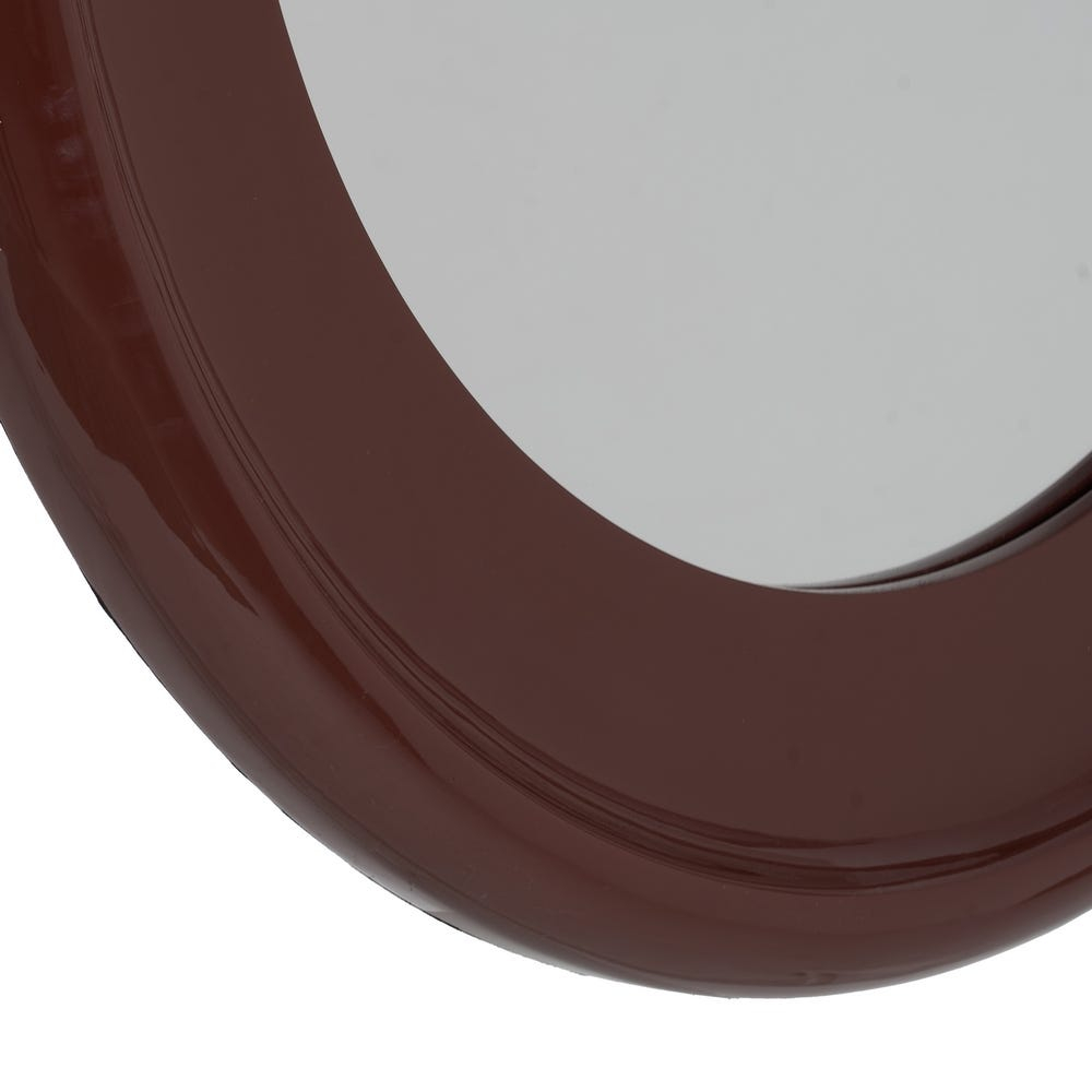 Rama generoasă, cu profil rotunjit și finisaj lucios, conturează ferm discul de sticlă și, astfel, adaugă profunzime peretelui. Tonul grena creează un contrast elegant lângă tencuieli deschise, punând în valoare atât textura pereților, cât și obiectele din jur.