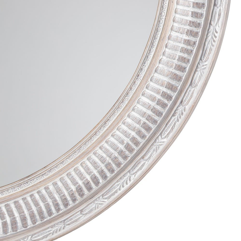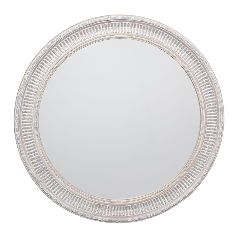 Această oglindă rotundă decorativă adaugă un aer sofisticat oricărui spațiu, prin rama sa sculptată fin și finisajul gri cu accente ușor patinate. Designul clasic și proporțiile echilibrate o transformă într-o piesă versatilă și atemporală.