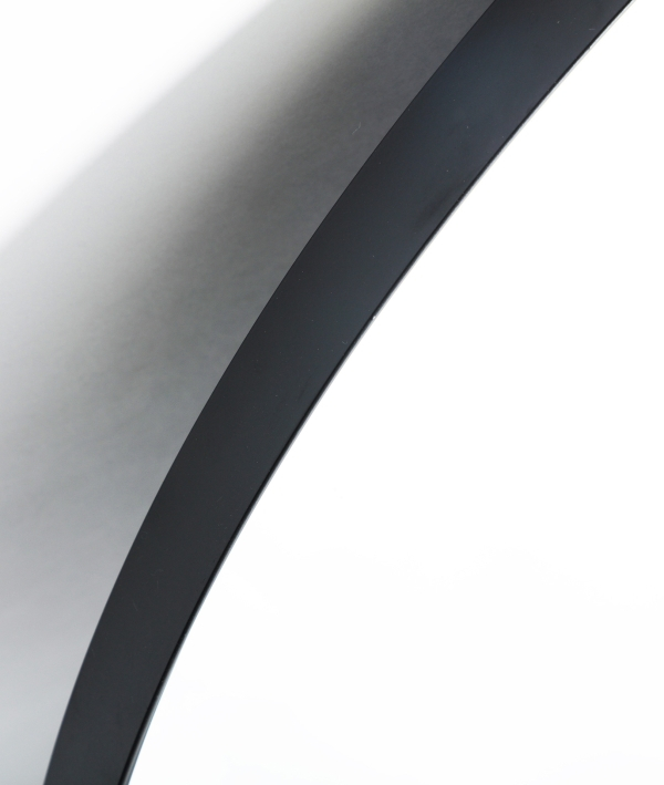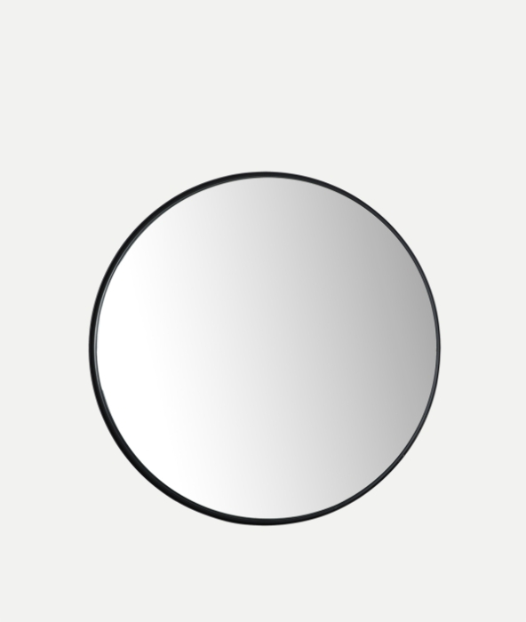 Cadrul metalic subțire, finisat în negru mat, evidențiază forma rotundă și conferă oglinzii un aer modern și rafinat. Suprafața generoasă reflectă lumina într-un mod uniform, amplificând spațiul și accentuând estetica încăperilor în care este amplasată.
