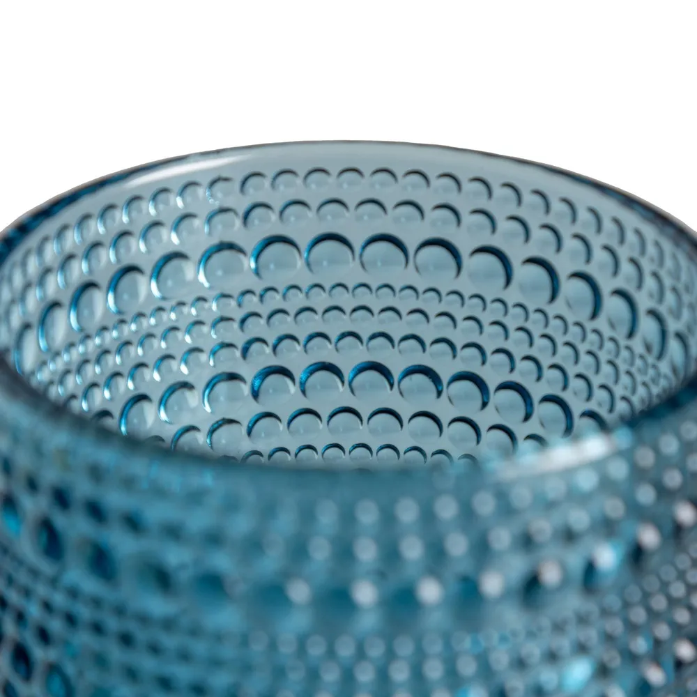 Set 6 Pahare albastre din sticlă soda-lime, cu model exterior texturat, ideal pentru servirea apei și a băuturilor răcoritoare.