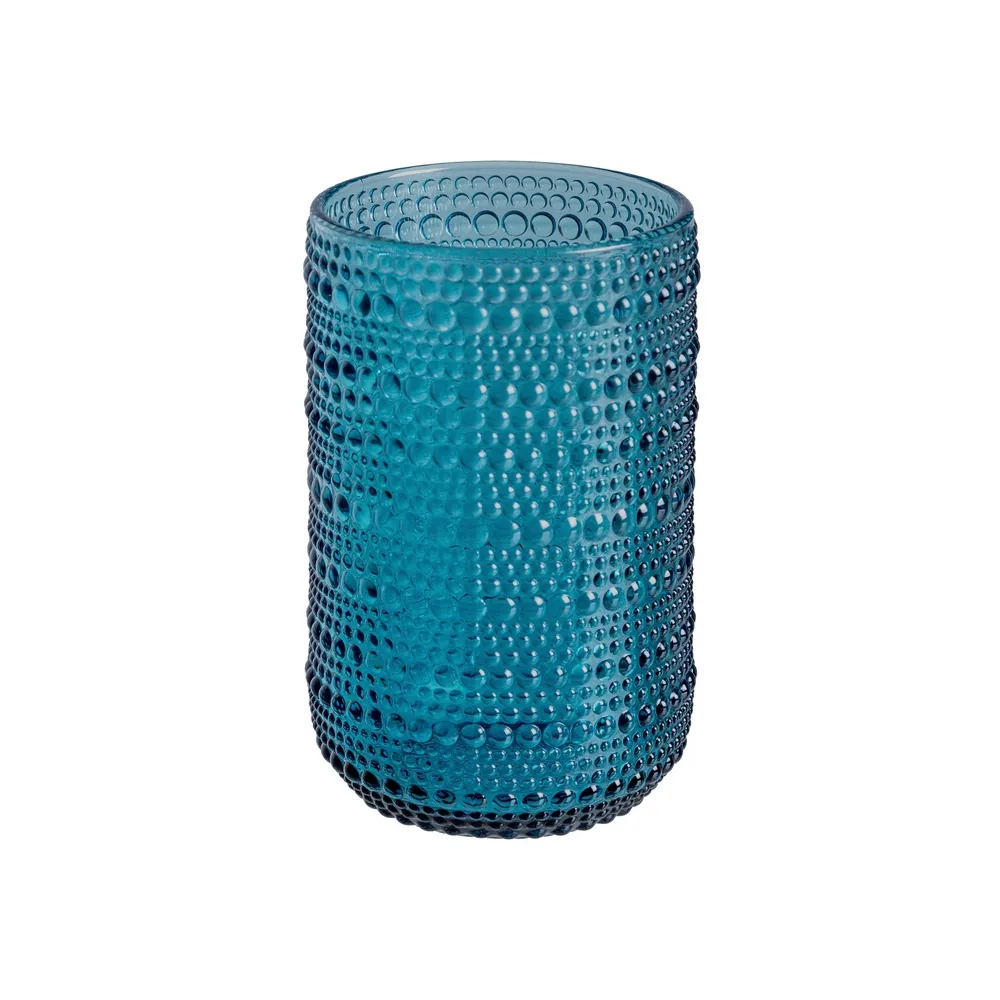 Pahar din sticlă soda-lime, ideal pentru apă sau sucuri, cu un design texturat pe exterior și nuanță intensă de albastru. Materialul rezistent și aspectul elegant fac din acest pahar o alegere practică și decorativă pentru mesele de zi cu zi sau pentru ocazii speciale. Textura unică oferă un plus de stil și rafinament oricărui aranjament de masă.