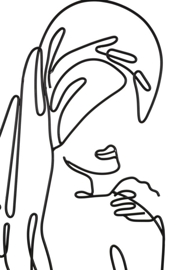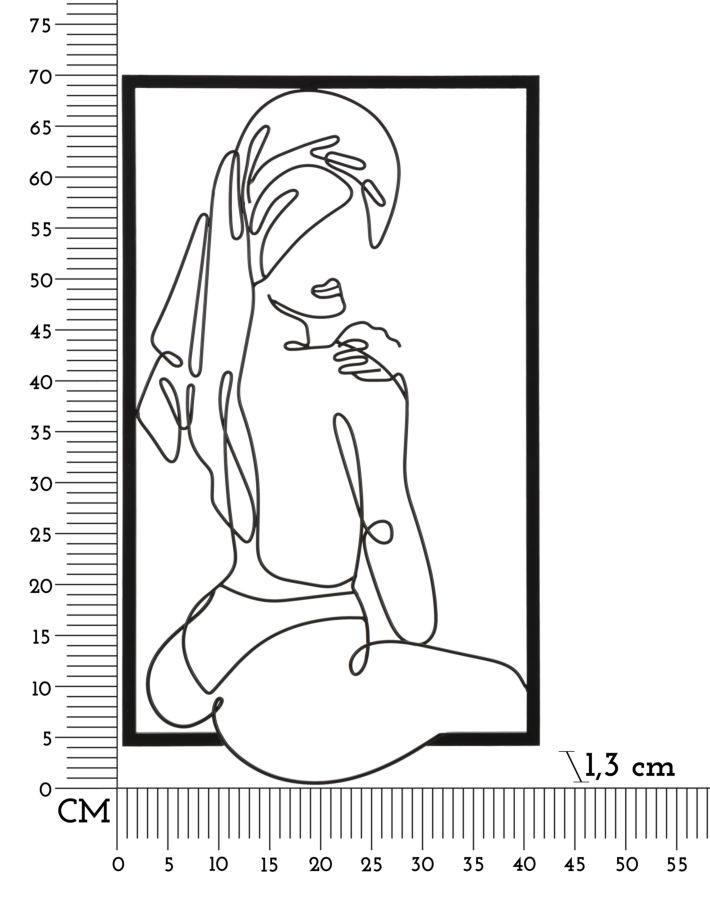Acest panou decorativ din metal, prezentând o figură feminină într-o poziție de contemplare, adaugă un element de calm și rafinament în orice spațiu. Dimensiunile panoului sunt de 40 cm lățime și 70 cm înălțime, fiind ideal pentru a oferi un accent vizual sofisticat într-un spațiu contemporan sau minimalist. Designul fluid și liniile curate evidențiază simplitatea și eleganța si poate captiva și îmbogăți atmosfera oricărui spațiu, fie că este vorba de un living, un birou sau un hol. Această decoratiune metalică este perfectă pentru cei care apreciază arta modernă și designul simplist.