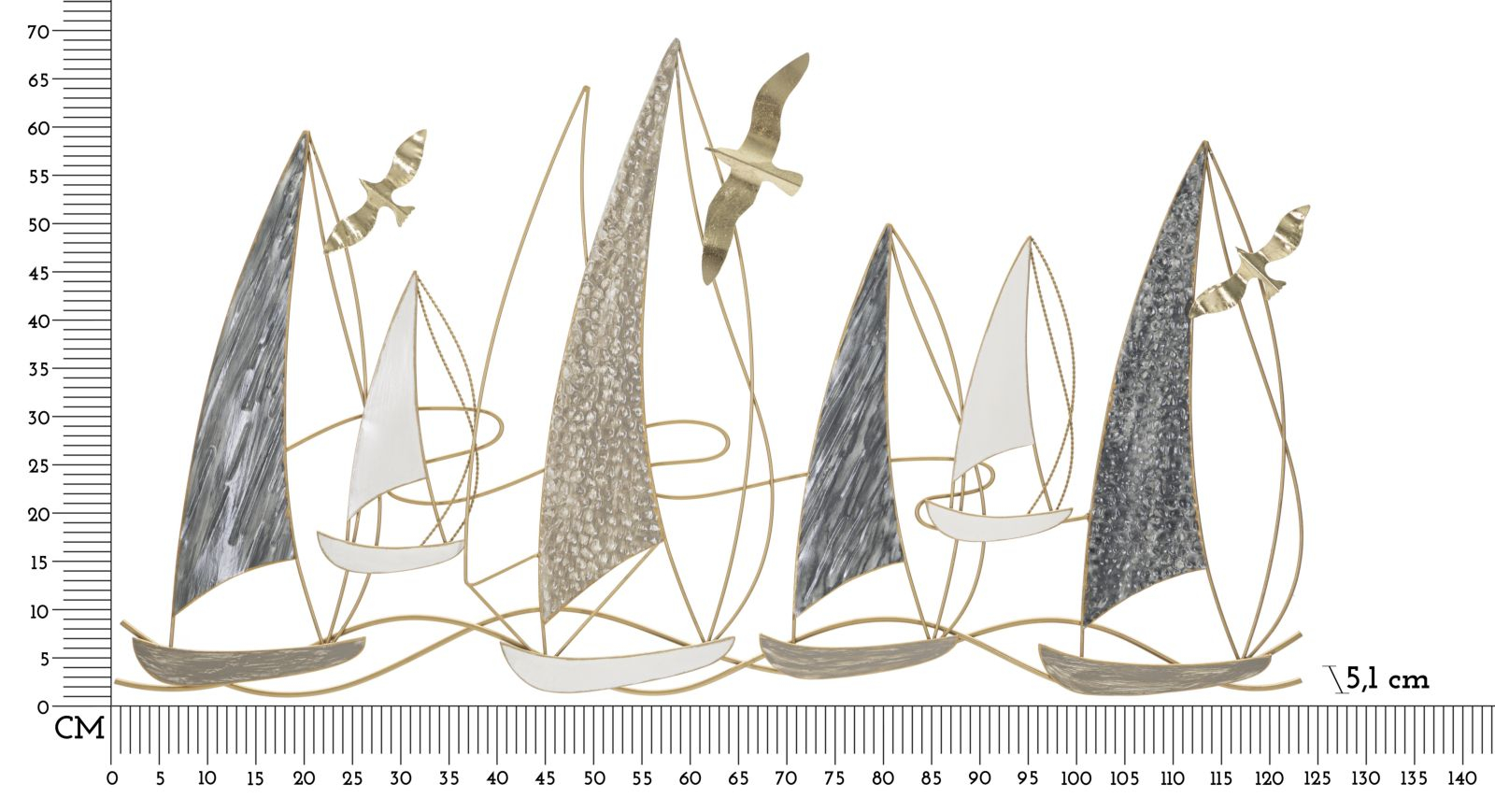 Panou mural metalic cu vaporașe și pescăruși aurii, creând atmosferă maritimă luxoasă. Perfect pentru living, camera de oaspeți sau birou. Transformă peretele într-o fereastră către mare, cu aspect glamour. Produs din colecția de toamnă 2024!