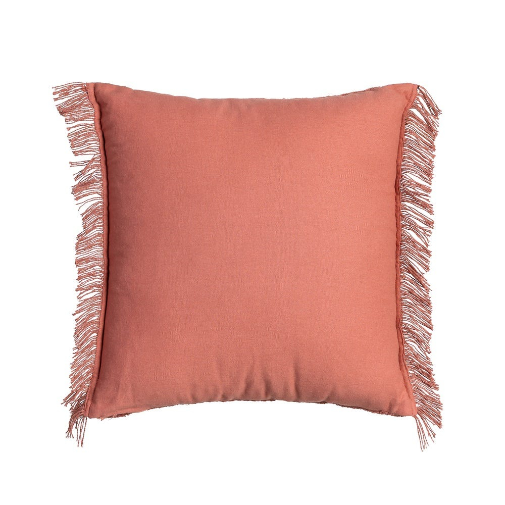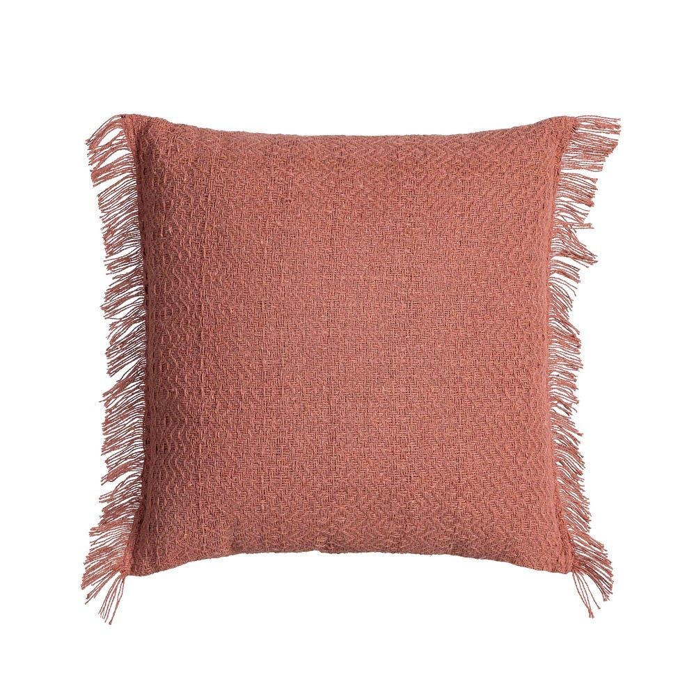 Set 2 perne decorative culoare cărămiziu din bumbac și stofă cu franjuri și huse detașabile 45 x 45 cm