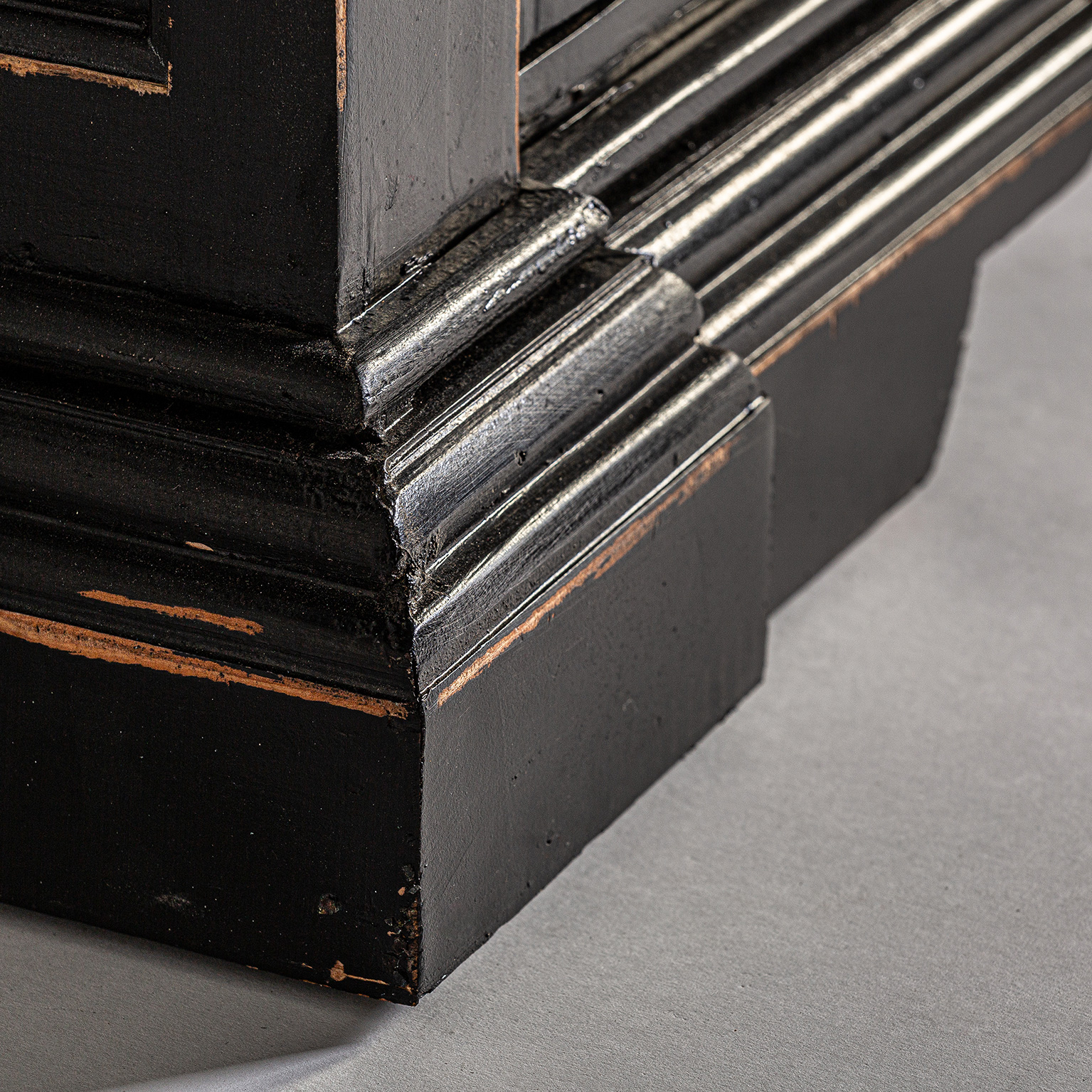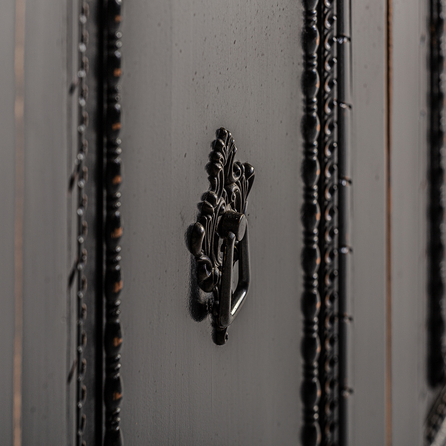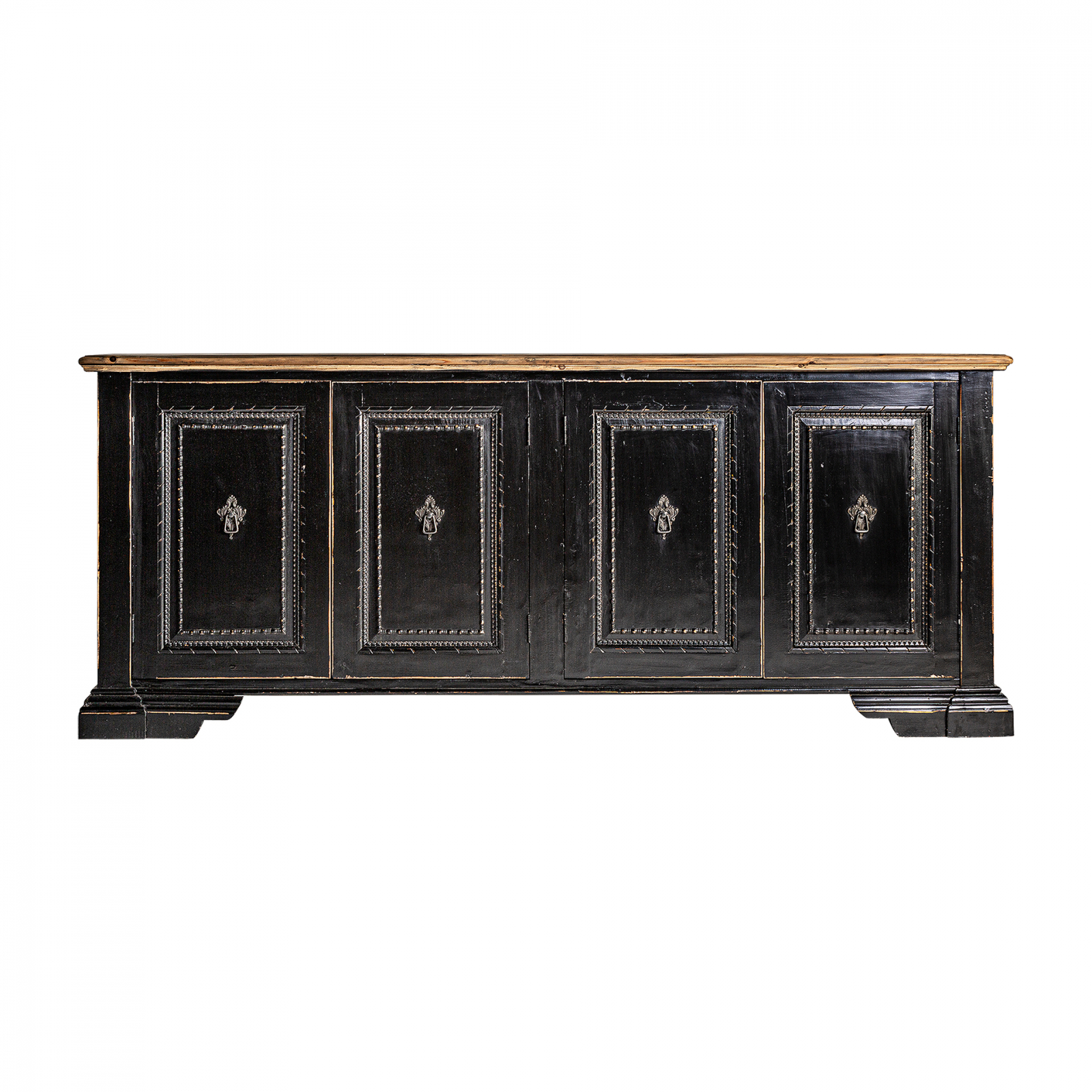 Comoda provensala din lemn de ulm cu contrast intre negru si natural. Piesa artizanala cu aspect dramatic si rustic, ideala pentru spatii ample.