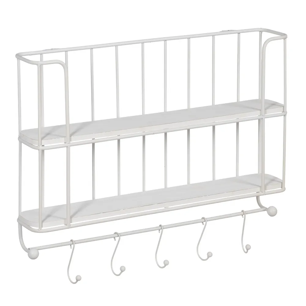 Aceasta etajera retro alba combina functionalitatea cu un design vintage atragator, oferind o solutie completa pentru organizare si decor. Cu dimensiuni de 51x14x72 cm si doua rafturi generoase de 66x10 cm, etajera ofera spatiu amplu pentru expunere si depozitare. Designul retro cu protectie pentru perete si obiecte adauga un farmec aparte, in timp ce agatatoarele integrate ofera versatilitate suplimentara pentru prosoape sau haine usoare. Structura metalica asigura durabilitate, iar finisajul alb se integreaza usor in diverse scheme de culori. Cele cinci inele de prindere posterioare faciliteaza instalarea sigura. Ideala pentru bai, bucatarii sau holuri, aceasta etajera multifunctionala combina aspectul vintage cu practica moderna, fiind perfecta pentru cei care apreciaza designul retro si functionalitatea.