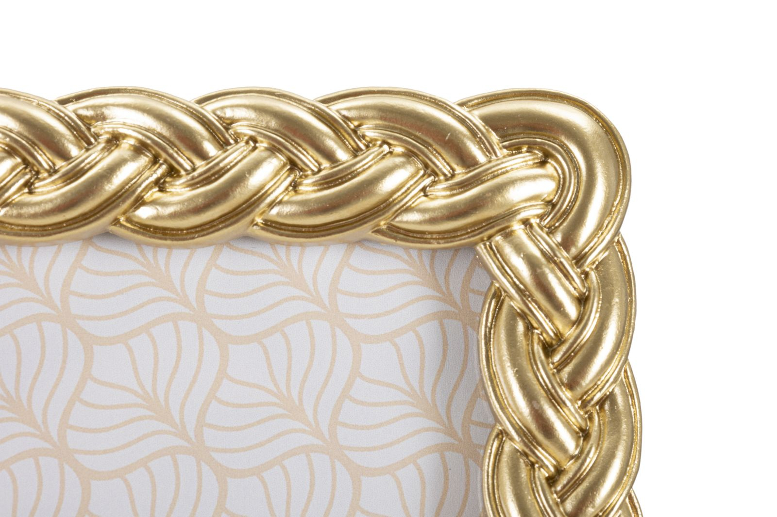 Împletitura aurie rafinată adaugă un aspect clasic elegant acestei rame foto, ideală pentru orice decor. Materiale: rășină și sticlă