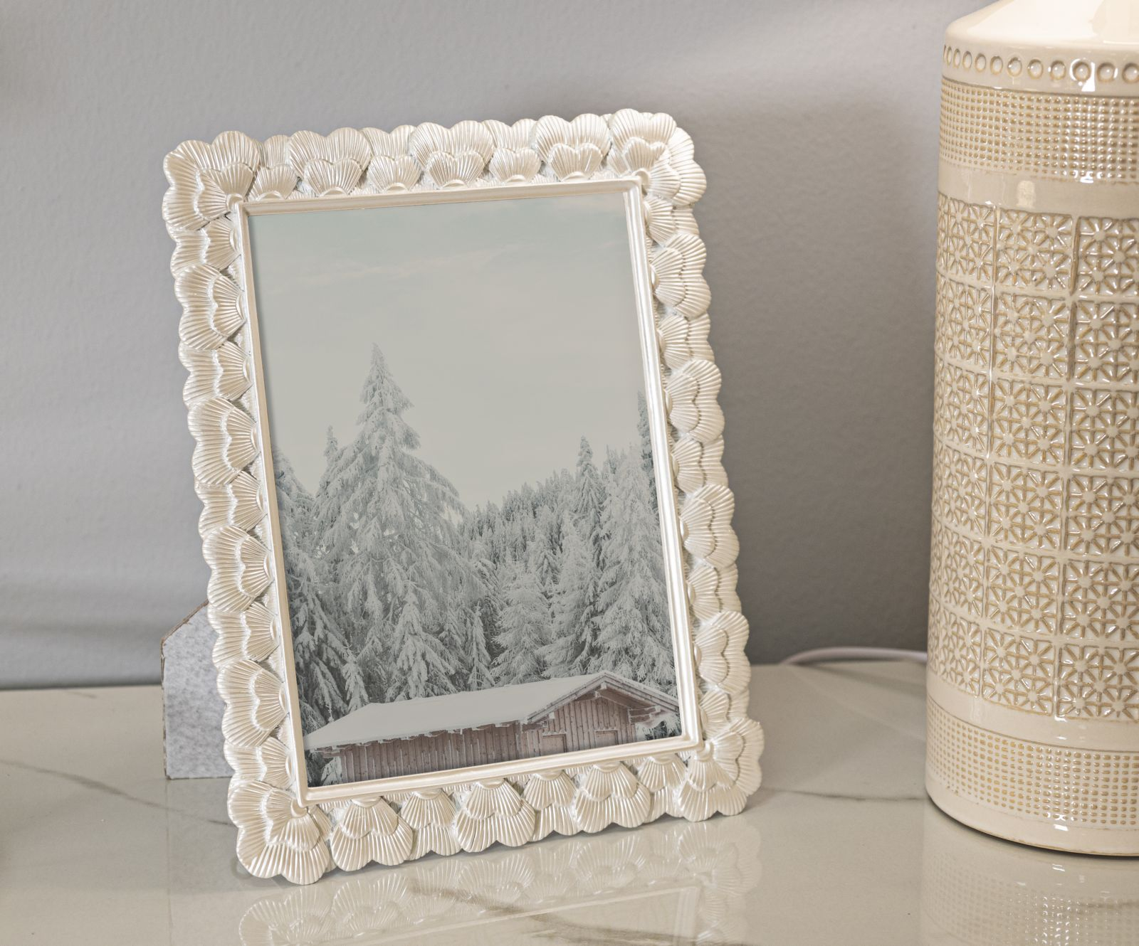 Setul de 2 rame foto Hearty, realizate din rășină albă cu detalii atent lucrate, aduce o notă de finețe și rafinament în prezentarea fotografiilor, transformând fiecare imagine într-o piesă decorativă.