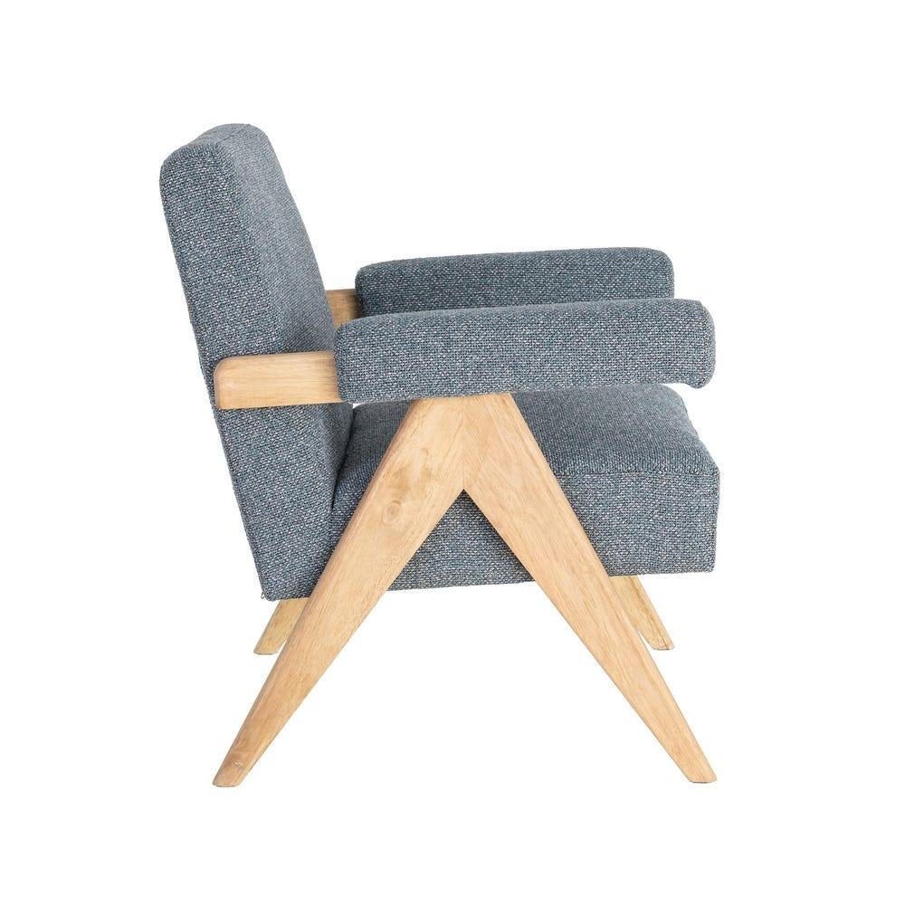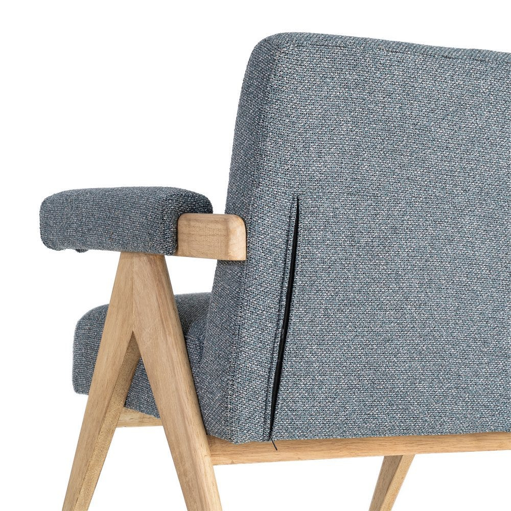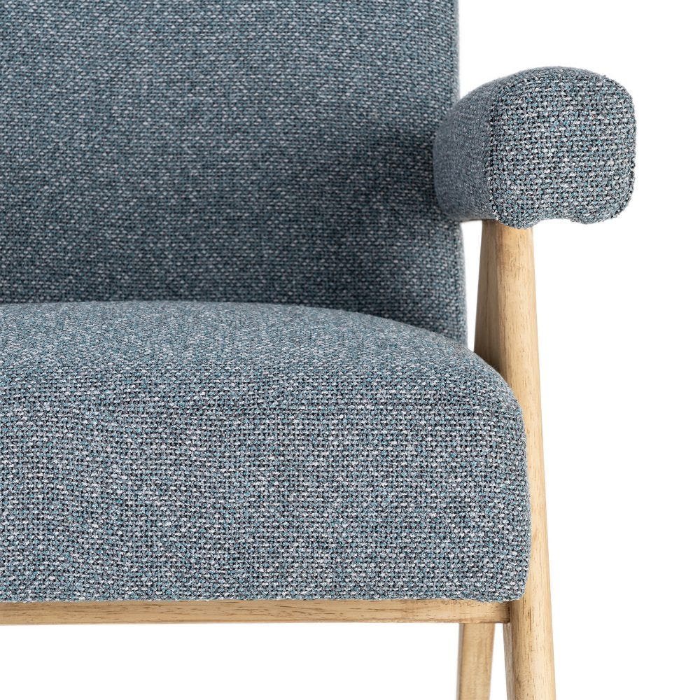 Un fotoliu care aduce echilibru și liniște vizuală prin simplitate și proporții bine gândite. Nuanța de albastru, combinată cu lemnul natural, creează un spațiu relaxant, în care fiecare detaliu contribuie la o atmosferă calmă și plăcută.