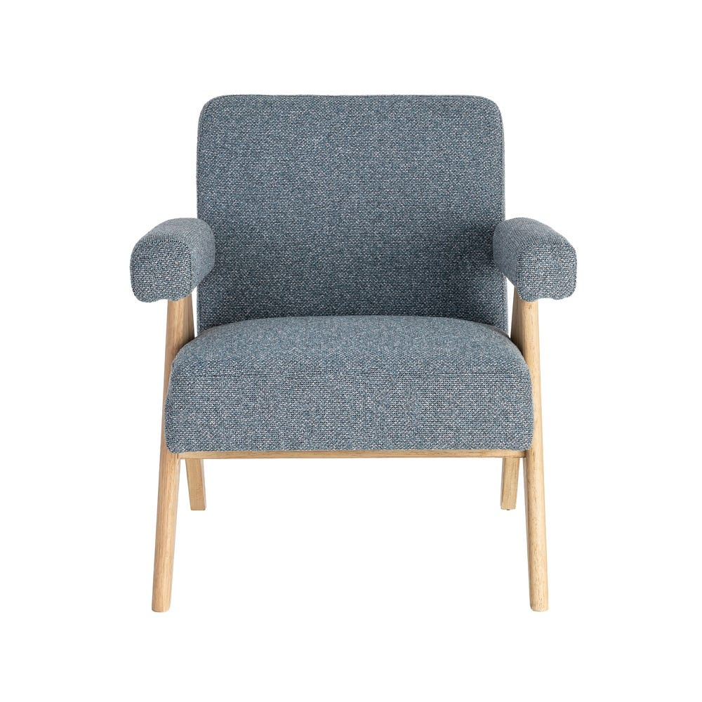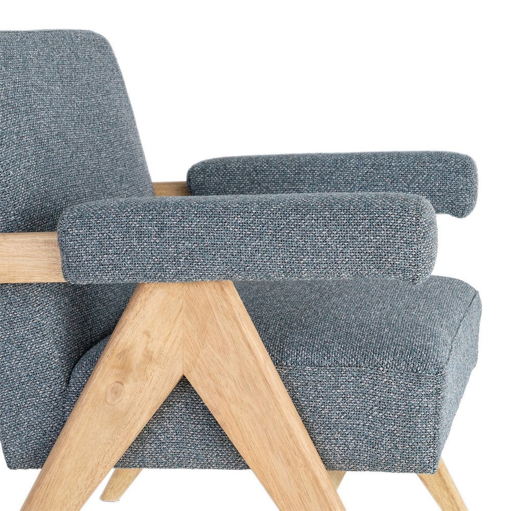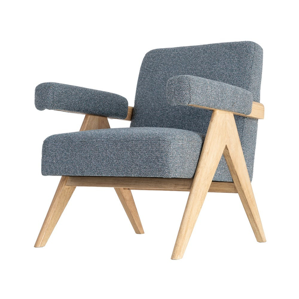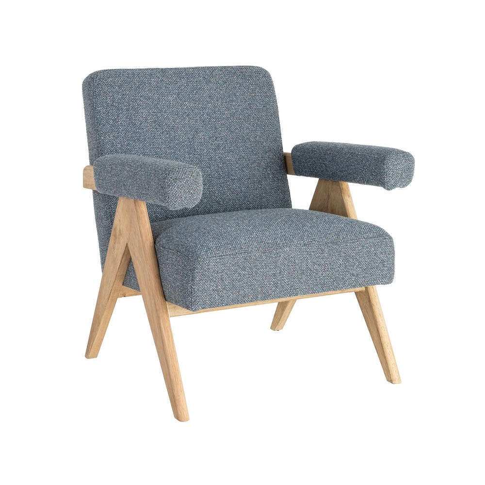 Un fotoliu care aduce echilibru și liniște vizuală prin simplitate și proporții bine gândite. Nuanța de albastru, combinată cu lemnul natural, creează un spațiu relaxant, în care fiecare detaliu contribuie la o atmosferă calmă și plăcută.