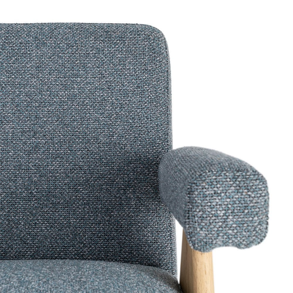 Este potrivit pentru momentele în care vrei să te relaxezi sau să creezi un colț confortabil în living sau dormitor. Brațele tapitate și forma sa echilibrată oferă susținere și confort în utilizarea zilnică, fiind o piesă care îmbină natural utilul cu partea estetică.