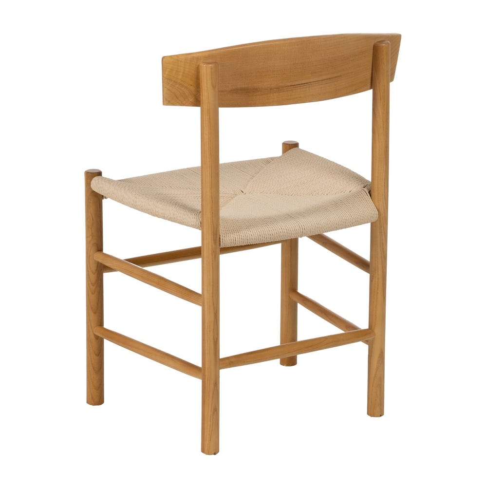 Șezutul împletit manual din ratan oferă o textură caldă și organică, completând perfect cadrul robust din lemn de ulm, cunoscut pentru durabilitatea și frumusețea sa naturală. Această combinație subtilă între estetică și funcționalitate face ca scaunul să fie ideal în decoruri scandinave, japandi sau rustic moderne.