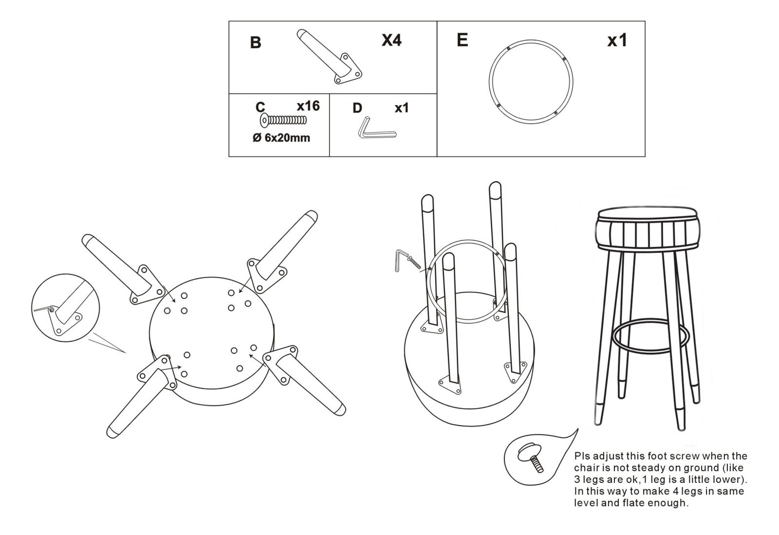 Forma compactă și proporțiile echilibrate îl fac ideal pentru insule de bucătărie, baruri sau spații moderne de socializare. Inelul metalic auriu oferă suport pentru picioare și completează armonios estetica elegantă a scaunului.