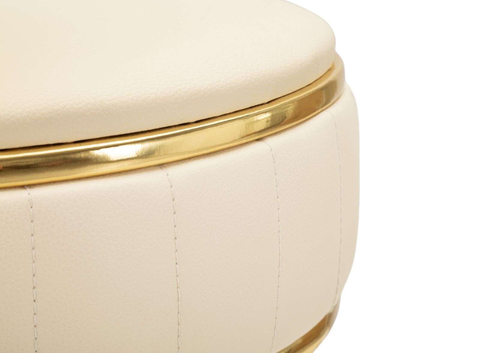Tapițeria moale oferă confort în utilizare, iar combinația dintre crem, negru și auriu creează un contrast sofisticat care adaugă stil și personalitate oricărui interior.