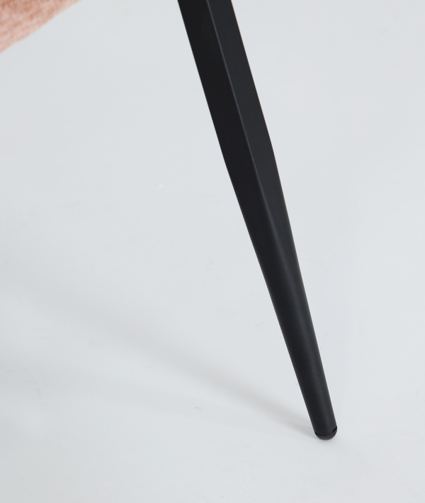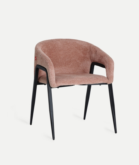 Tapițeria din poliester în ton roz pal este completată de structura din fier finisat în negru, rezultând un contrast vizual plăcut și bine controlat. Acest set de 2 scaune este potrivit atât pentru dininguri rezidențiale sofisticate, cât și pentru proiecte HoReCa sau spații profesionale unde se caută un design contemporan cu personalitate discretă.