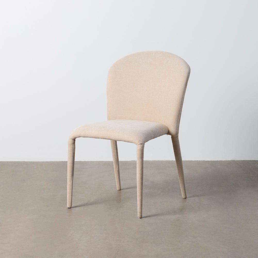 Set de 4 scaune dining crem din stofă cu structură metalică – eleganță discretă, confort și integrare facilă în decoruri luminoase.
