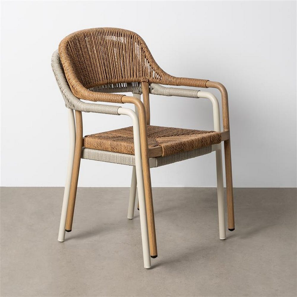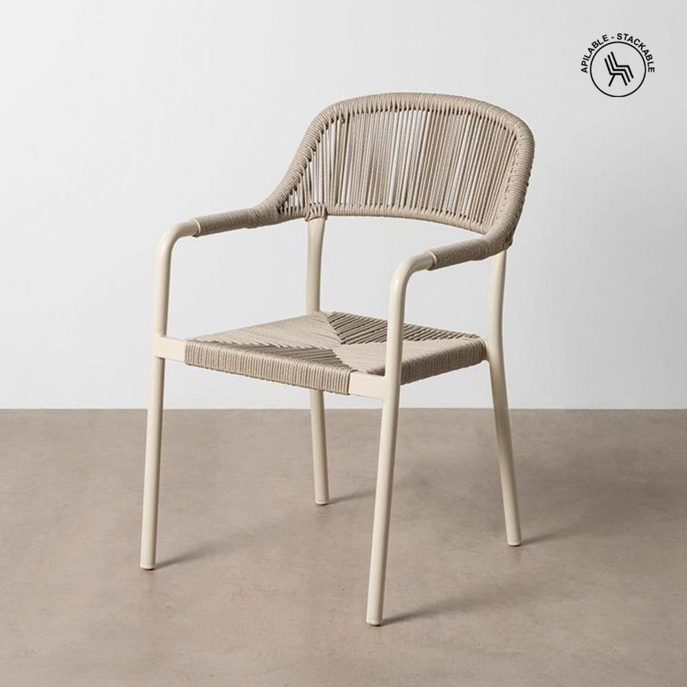 Acest set de 2 scaune bej aduce un aer relaxat și elegant în orice spațiu exterior, prin combinația dintre structura ușoară și detaliile împletite care inspiră naturalețe. Este alegerea ideală pentru terase luminoase, grădini sau zone HORECA unde atmosfera contează.
