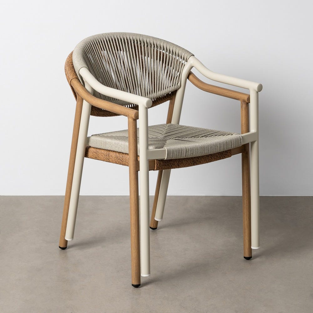 Acest set de 2 scaune maro aduce căldură și naturalețe în orice spațiu exterior, prin îmbinarea armonioasă dintre structura cu aspect lemnos și împletitura fină. Este alegerea ideală pentru terase primitoare și grădini în care atmosfera relaxată face diferența.