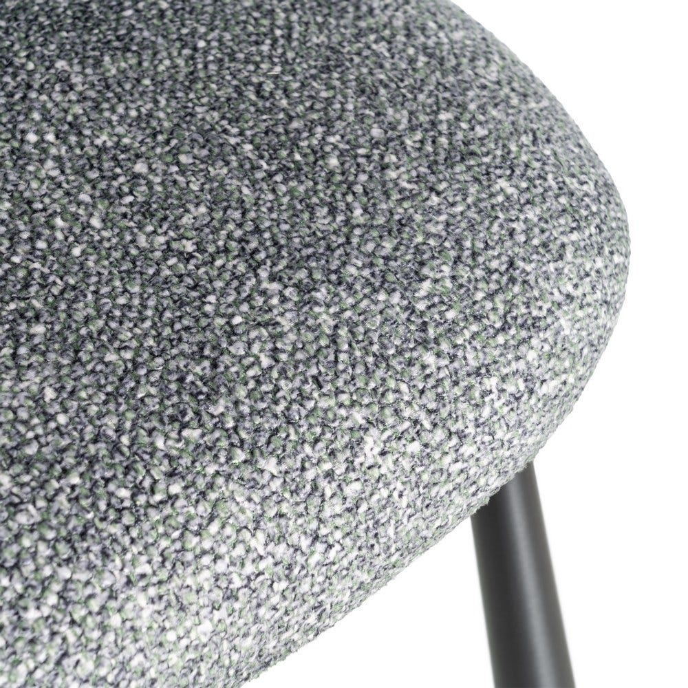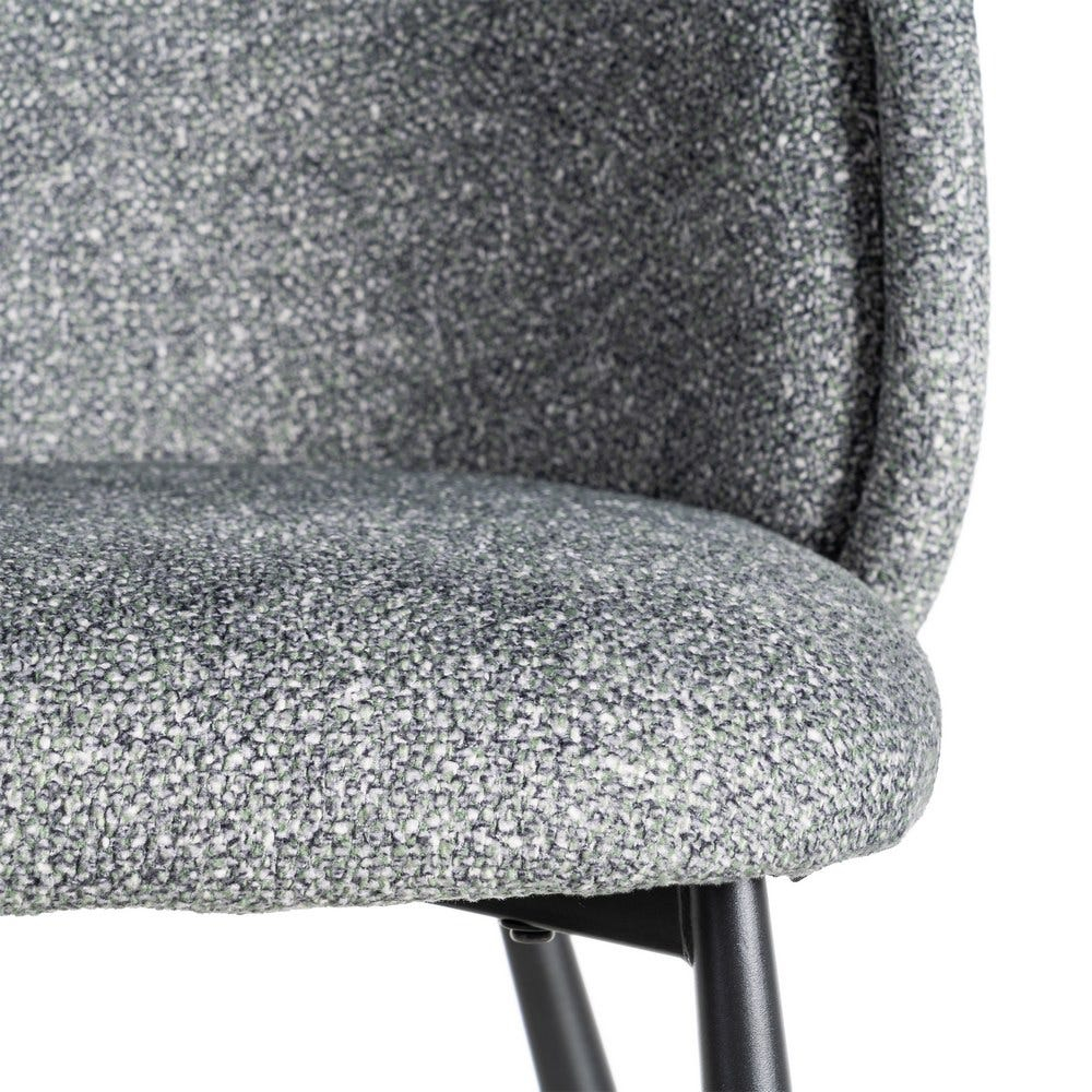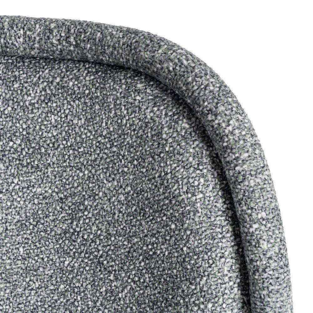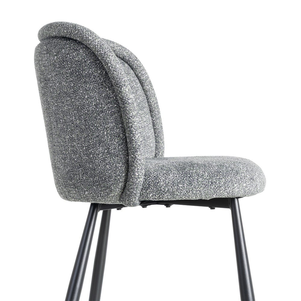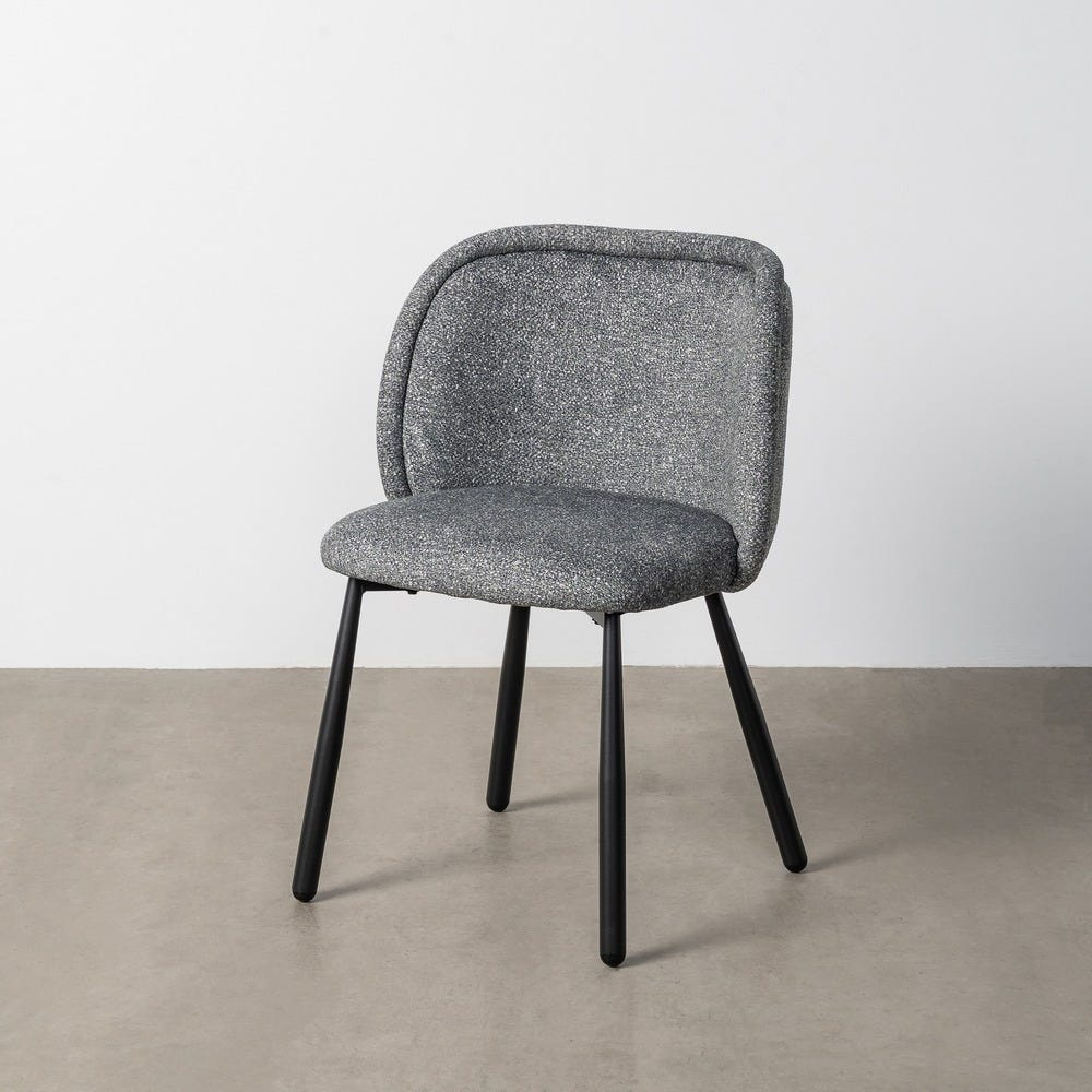 Silueta compactă intră ușor sub blat, iar spătarul curbat distribuie sprijinul pe toată zona spatelui. Țesătura închisă la culoare se asortează perfect cu blaturi negre, piatră sau lemn fumuriu.