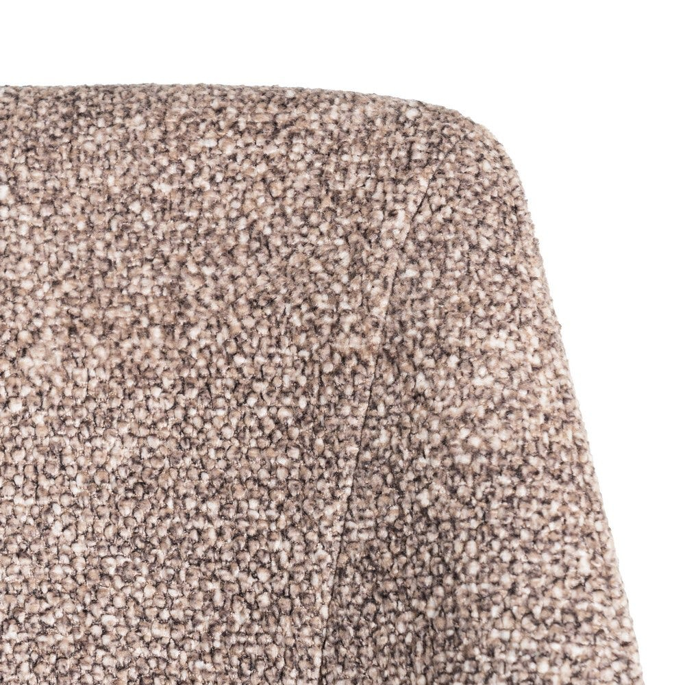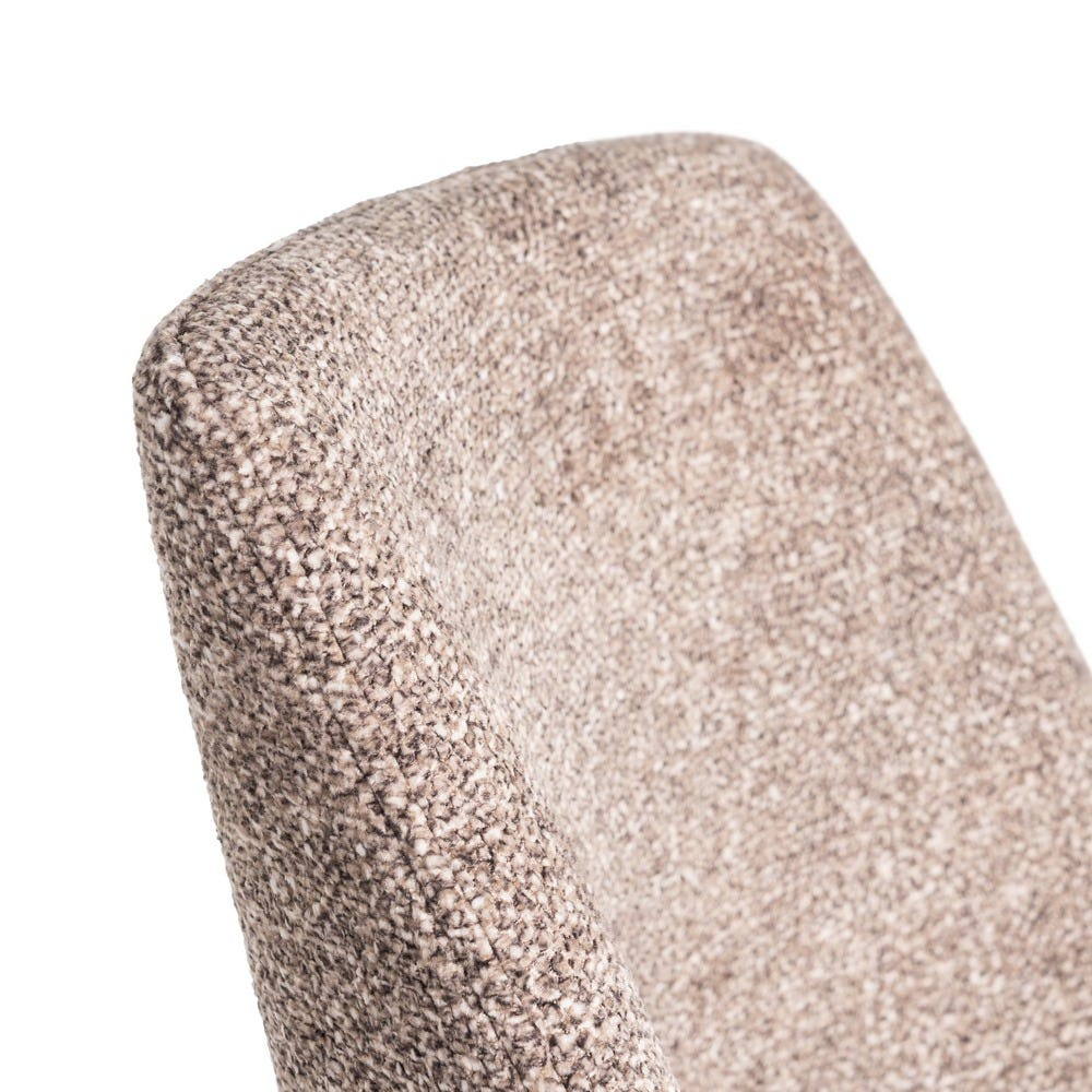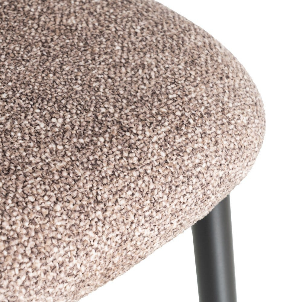 Set de 2 scaune din stofă taupe cu textură marmorantă, profil suplu și picioare metalice negre. Nuanța taupe este extrem de ușor de asortat, de la lemn natur la suprafețe gri sau negre, fiind ideală pentru proiecte cu look modern-elegant.