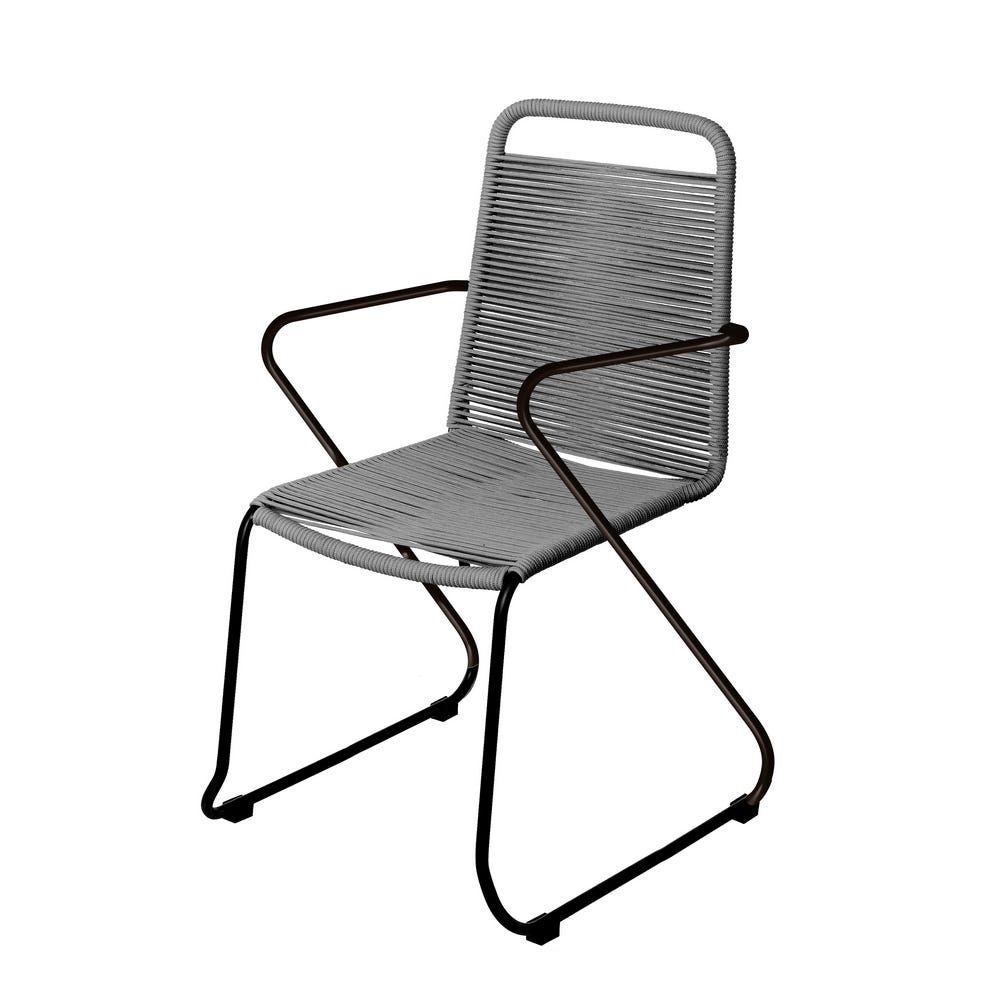 Scaun gradina cu brate din franghie tehnica antracit si cadru metalic negru confort modern pentru exterior 57 x 65,5 x 90 cm