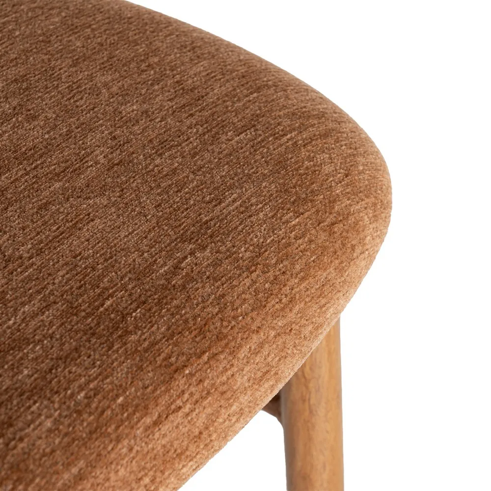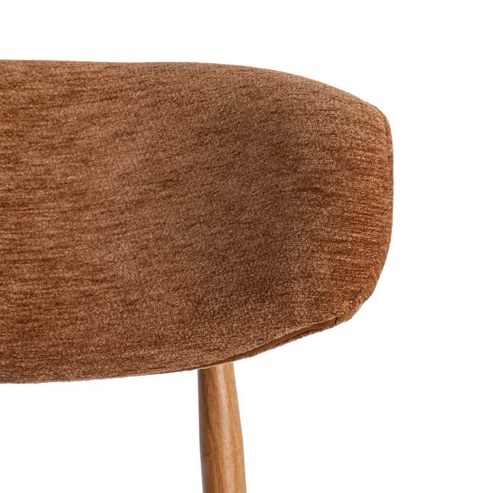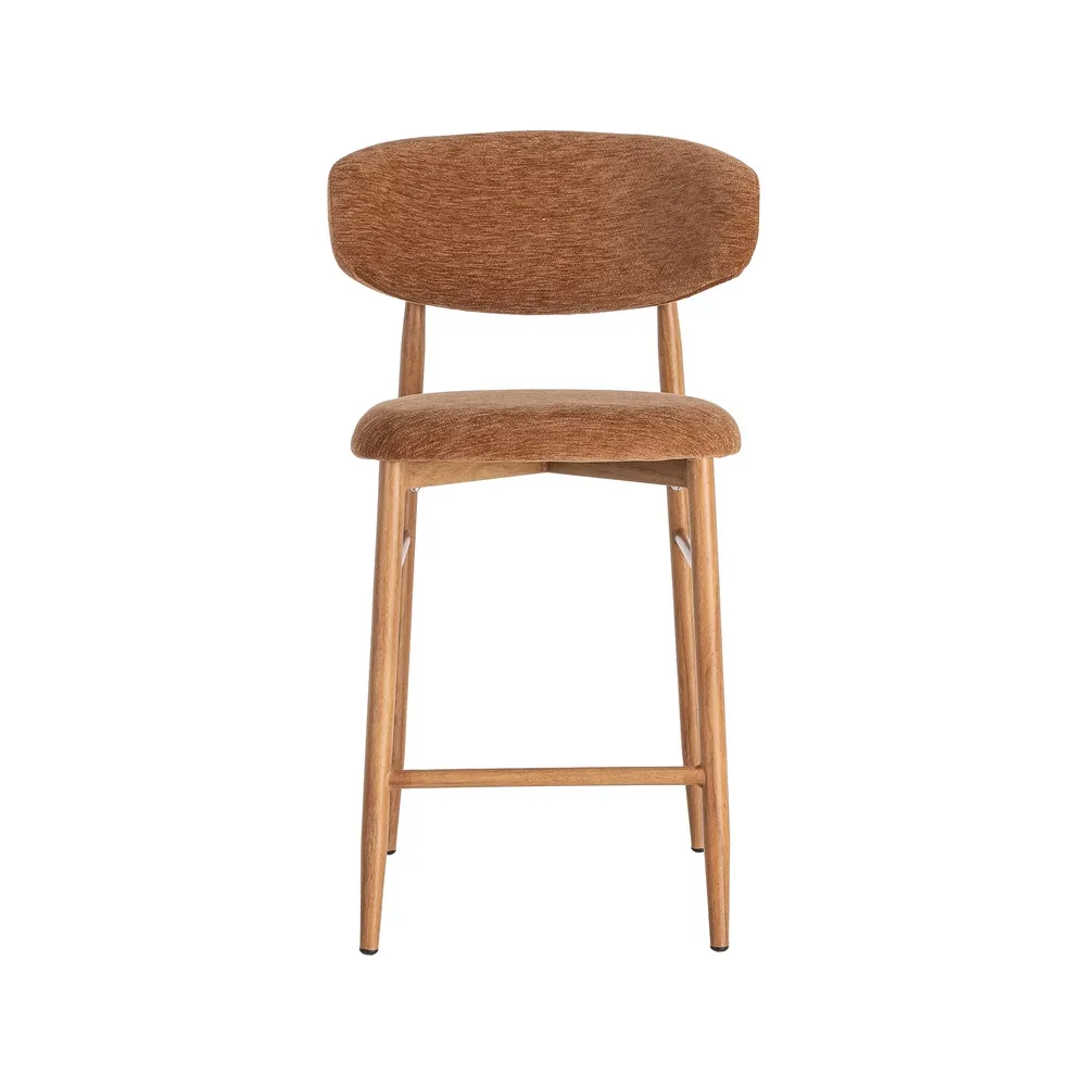 Acest set de scaune de bar aduce în spațiu o atmosferă caldă și relaxată, prin nuanța portocalie a stofei și liniile simple care inspiră confort. Este genul de piesă care face zona de bar sau insulă de bucătărie să pară mai primitoare și mai ușor de folosit zi de zi.