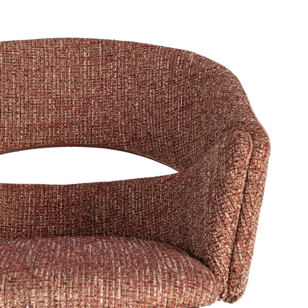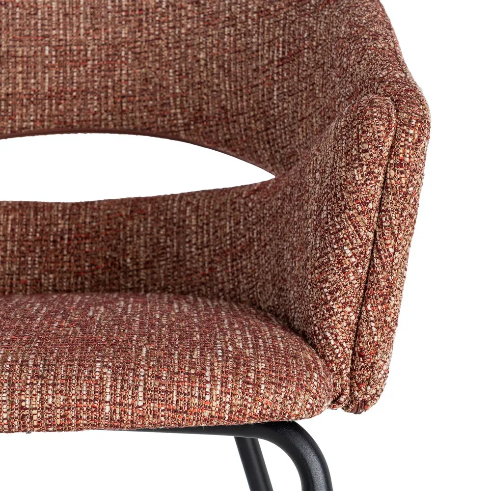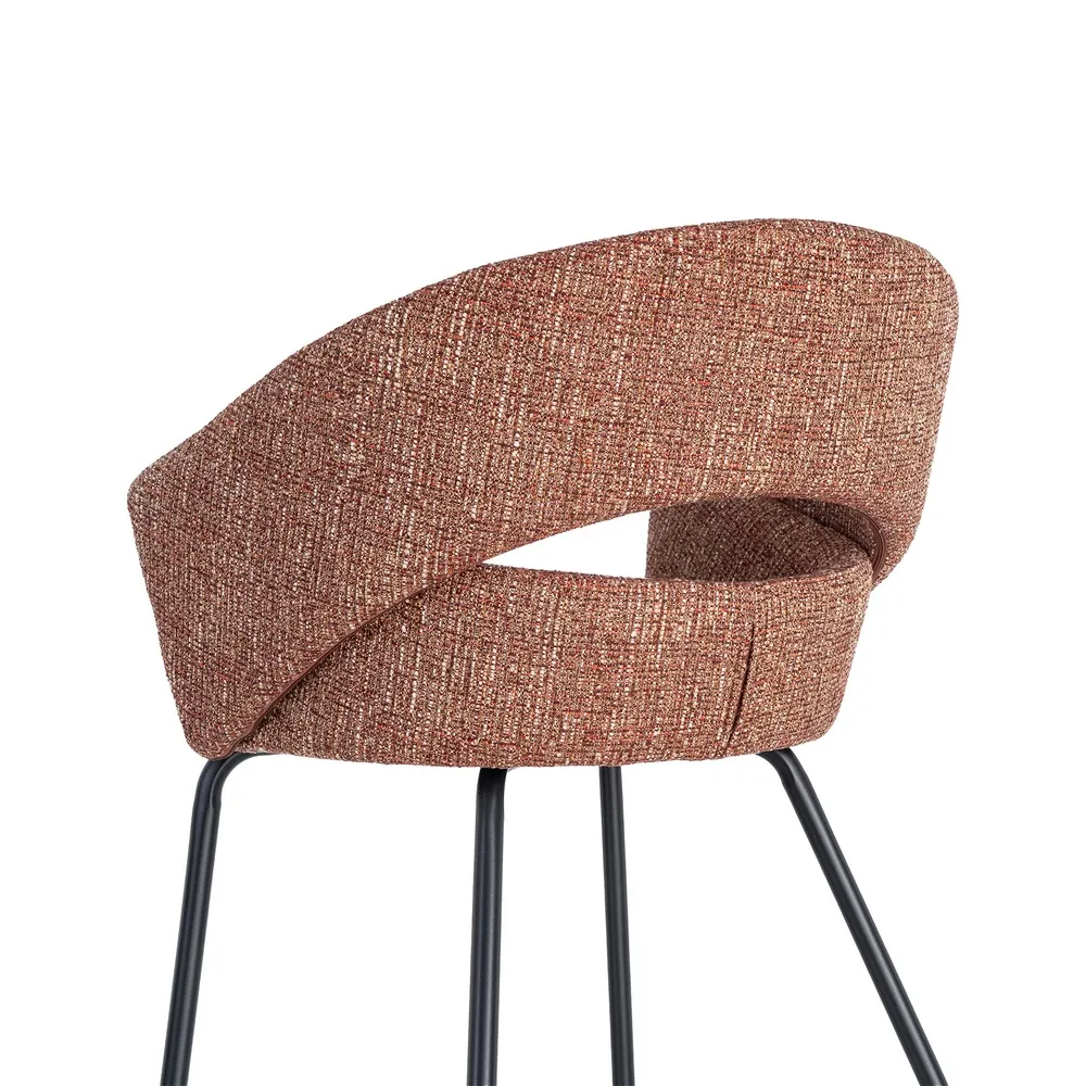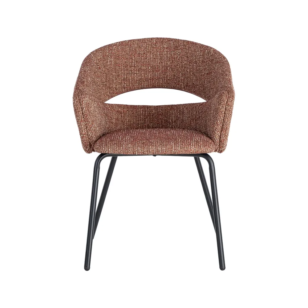 Acest set de scaune dining aduce în spațiu o notă caldă și plină de personalitate, prin nuanța cărămizie a stofei și forma rotunjită care invită la relaxare. Este genul de piesă care schimbă subtil atmosfera și face încăperea să pară mai primitoare, fără să devină încărcată.