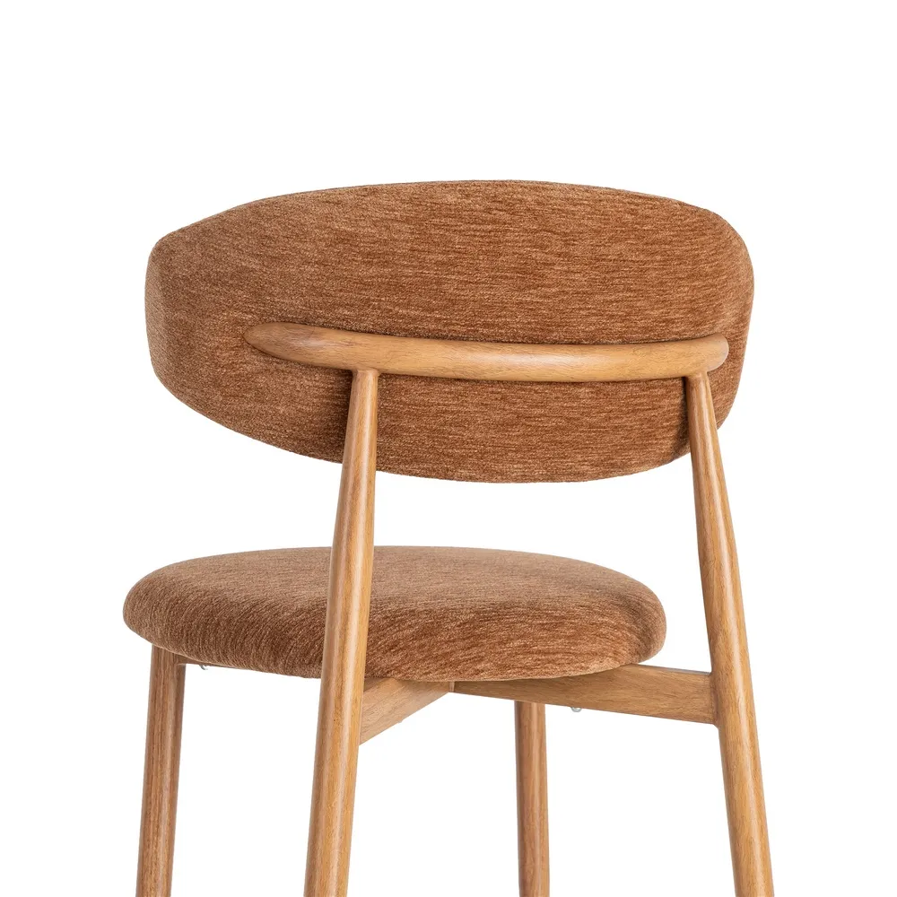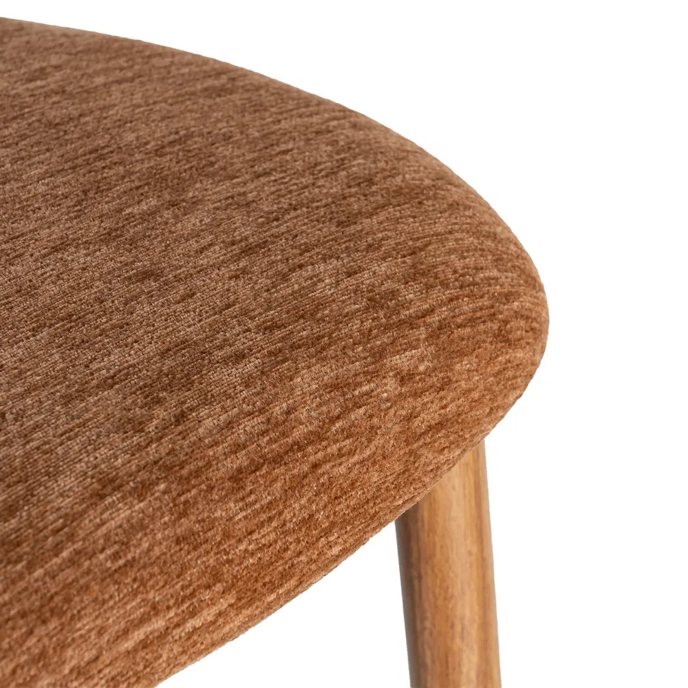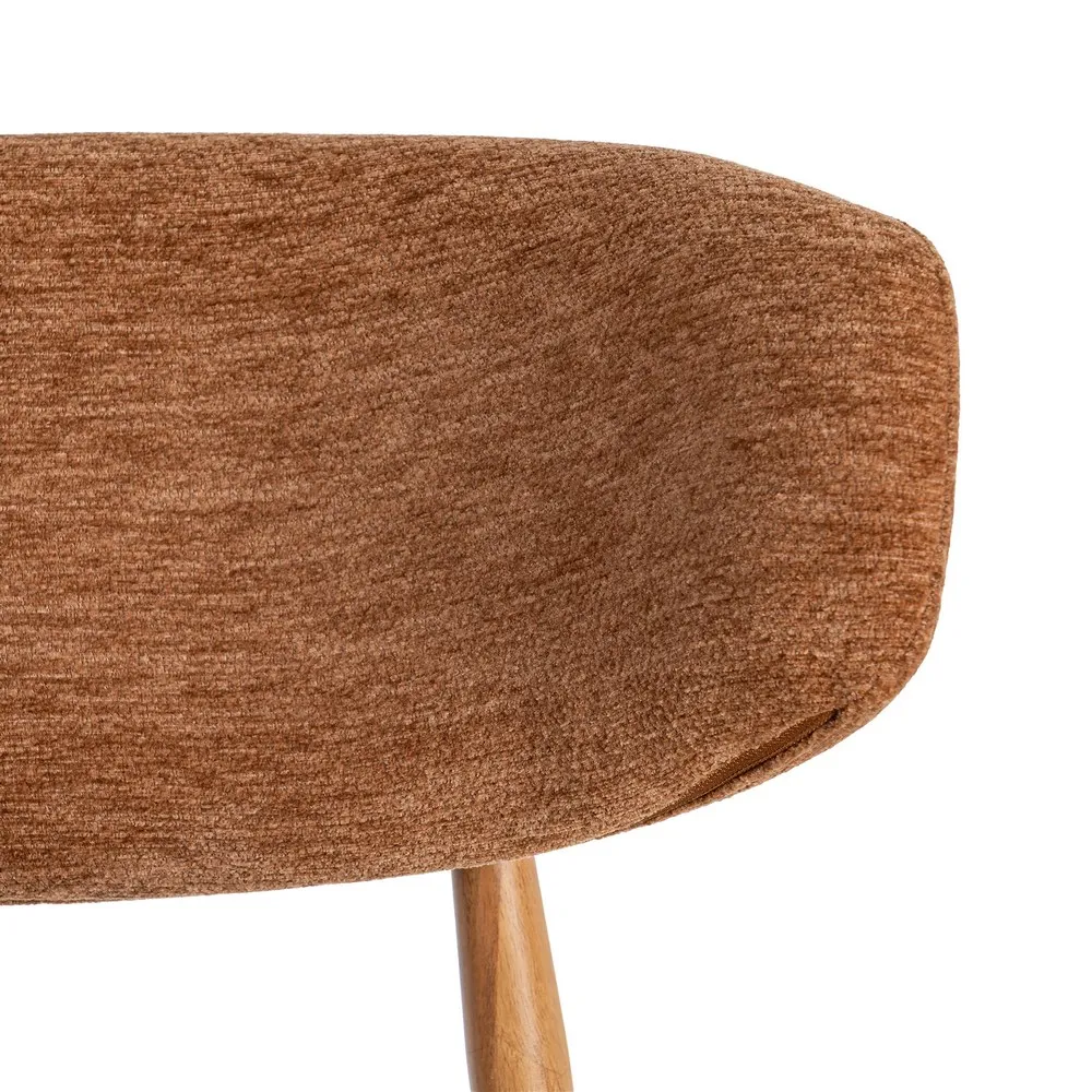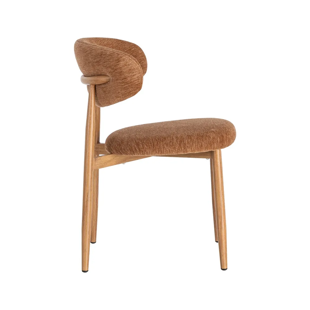 Acest set de scaune dining aduce în spațiu o senzație caldă și luminoasă, prin nuanța portocalie a stofei și liniile simple care inspiră relaxare. Este genul de piesă care face încăperea să pară mai prietenoasă și mai ușor de locuit, fără să încarce vizual.