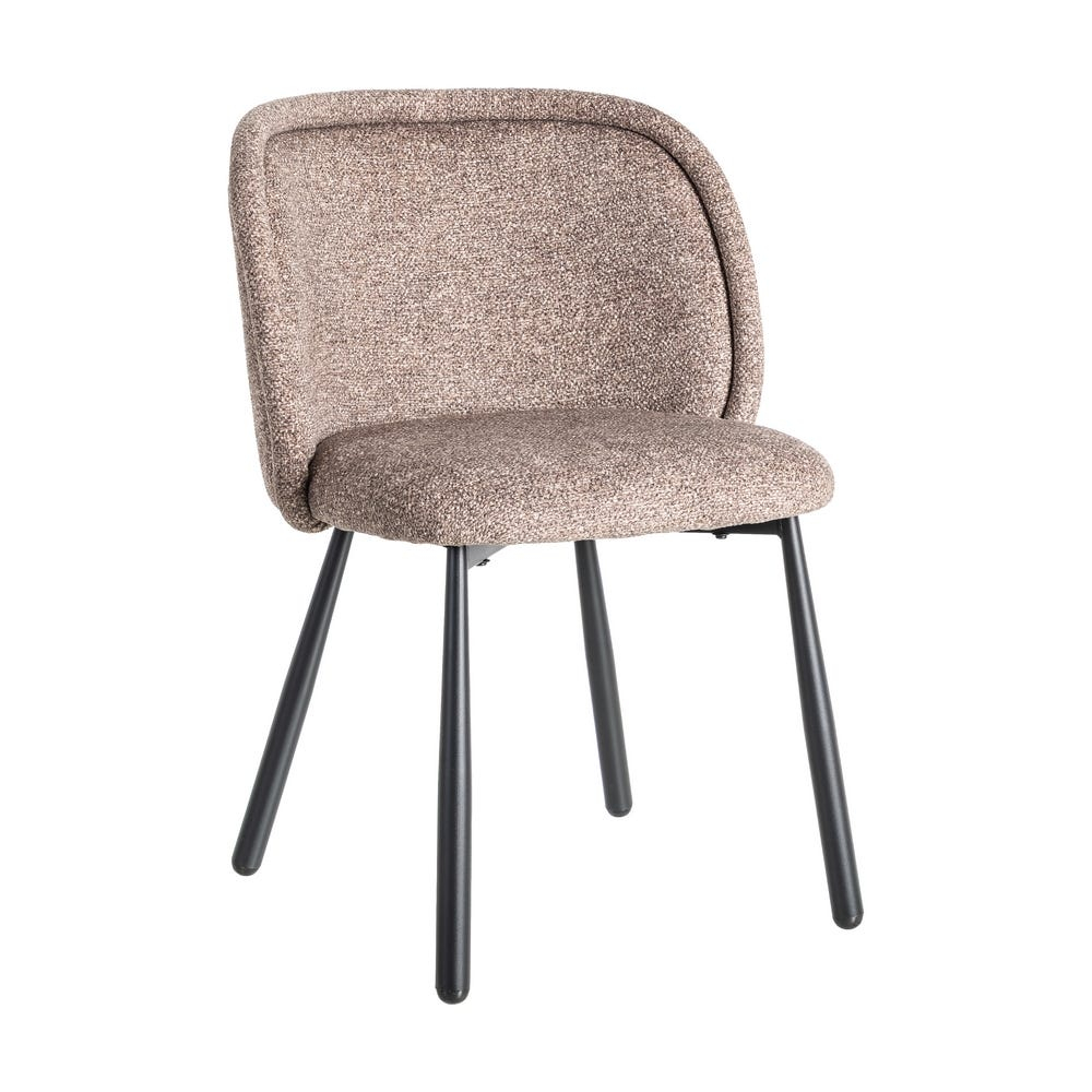 Spătarul curbat urmează linia corpului, iar șezutul bine conturat menține o postură comodă. Textura melanj taupe armonizează lemnul natur, negrul mat sau finisajele minerale.
