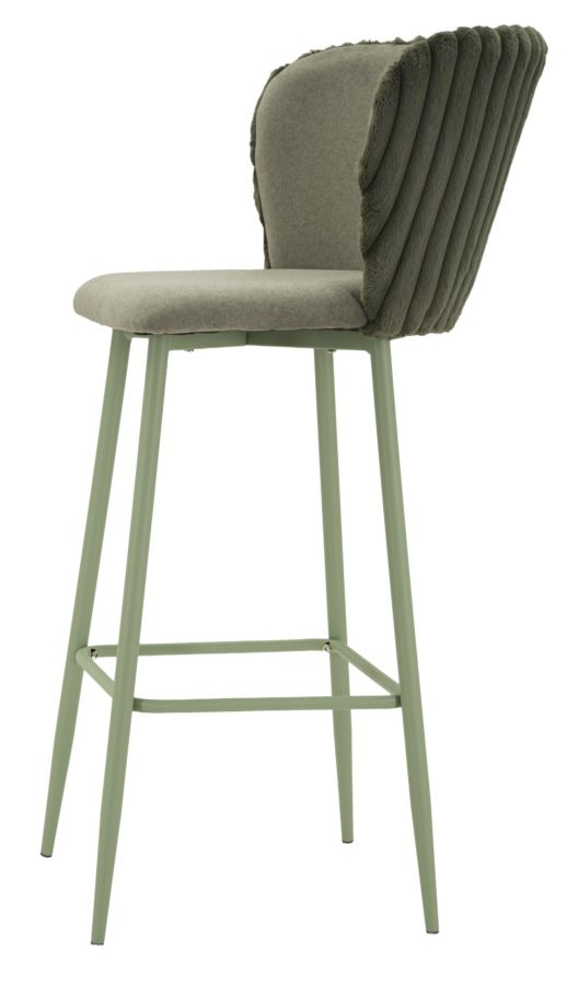 Set de 2 scaune de bar tapițate verzi ALASKA pentru insulă și zona de bar, cu spătar lat confortabil și linie subțire, în nuanțe de verde care aduc prospețime decorului.