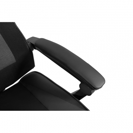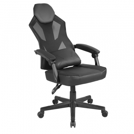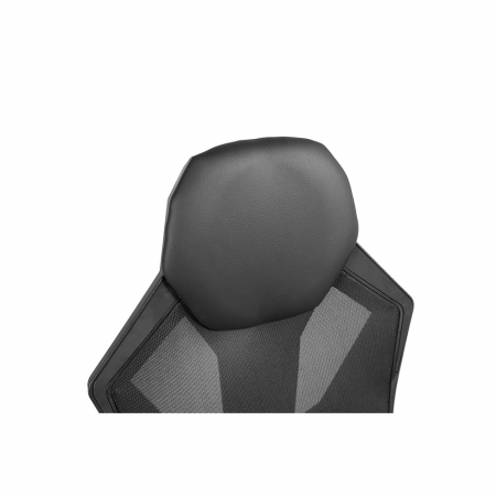 Spătarul din mesh permite o bună circulație a aerului, prevenind disconfortul termic, în timp ce pielea ecologică adaugă un aspect elegant și ușor de întreținut. Perna lombară și tetiera sunt incluse pentru o susținere corectă a spatelui și gâtului, ajutând la menținerea unei posturi sănătoase în timpul lucrului sau relaxării.