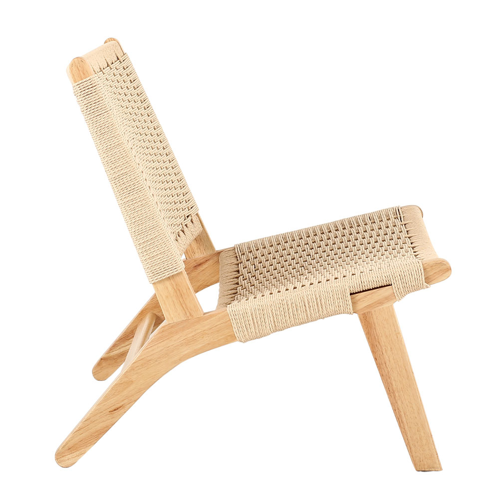 Da, frânghia împletită oferă flexibilitate, iar forma joasă susține o poziție relaxată.