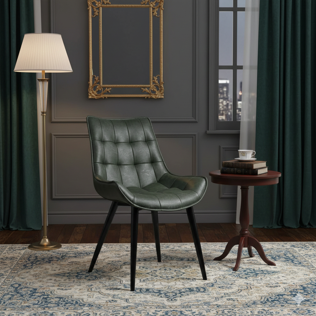 Sugestie CreativDeco: Amplasează scaunele Bristol în jurul unei mese din lemn natural sau sticlă pentru a evidenția frumusețea nuanței verde oliv. Completează cu accente decorative în nuanțe neutre și elemente metalice negre pentru un aspect unitar. Pentru un contrast elegant, adaugă textile în culori complementare și plante verzi care să accentueze aspectul natural al tapițeriei.