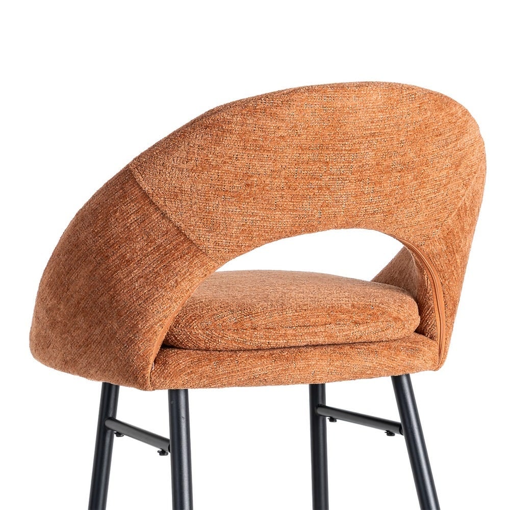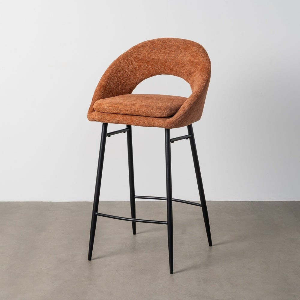 Set de 2 scaune de bar teracotă, realizate din stofă premium și cadru metalic solid, ideale pentru spații de dining, bucătării moderne sau zone HORECA, unde funcționalitatea întâlnește designul elegant.