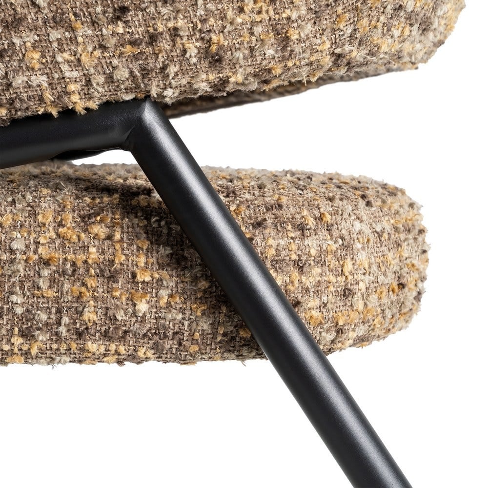 Aceste scaune se remarcă prin forma ergonomică și liniile elegante, oferind un confort deosebit la utilizare. Tapițeria din stofă maro adaugă profunzime și stabilitate cromatică, transformând scaunele într-o alegere versatilă pentru dining, living sau spații de socializare.