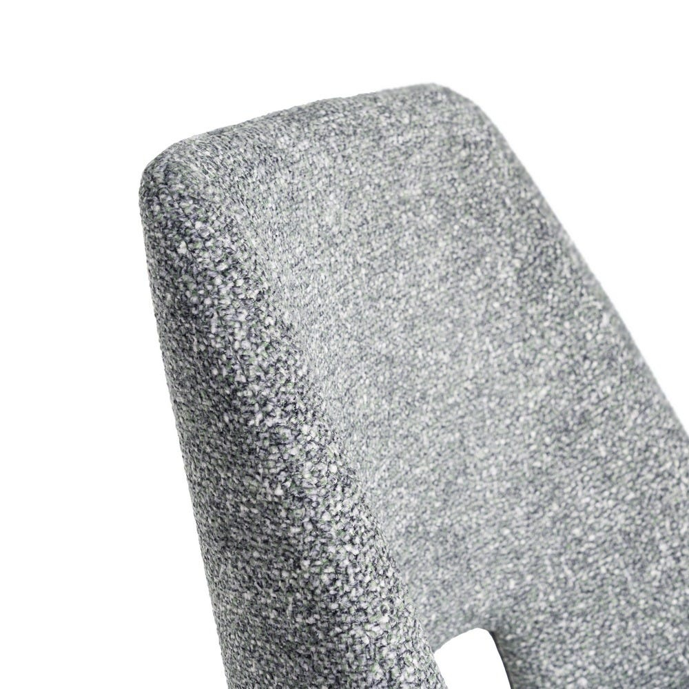 Set de 2 scaune din stofă gri antracit cu structură suplă și decupaj ergonomic în spătar. Aspectul profund al textilei aduce un accent urban, potrivit interioarelor industrial-chic sau contemporane.