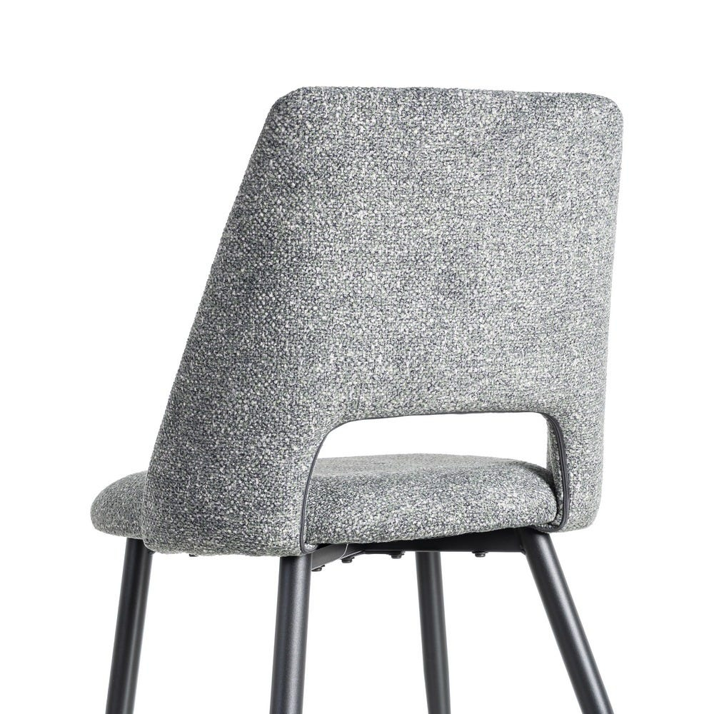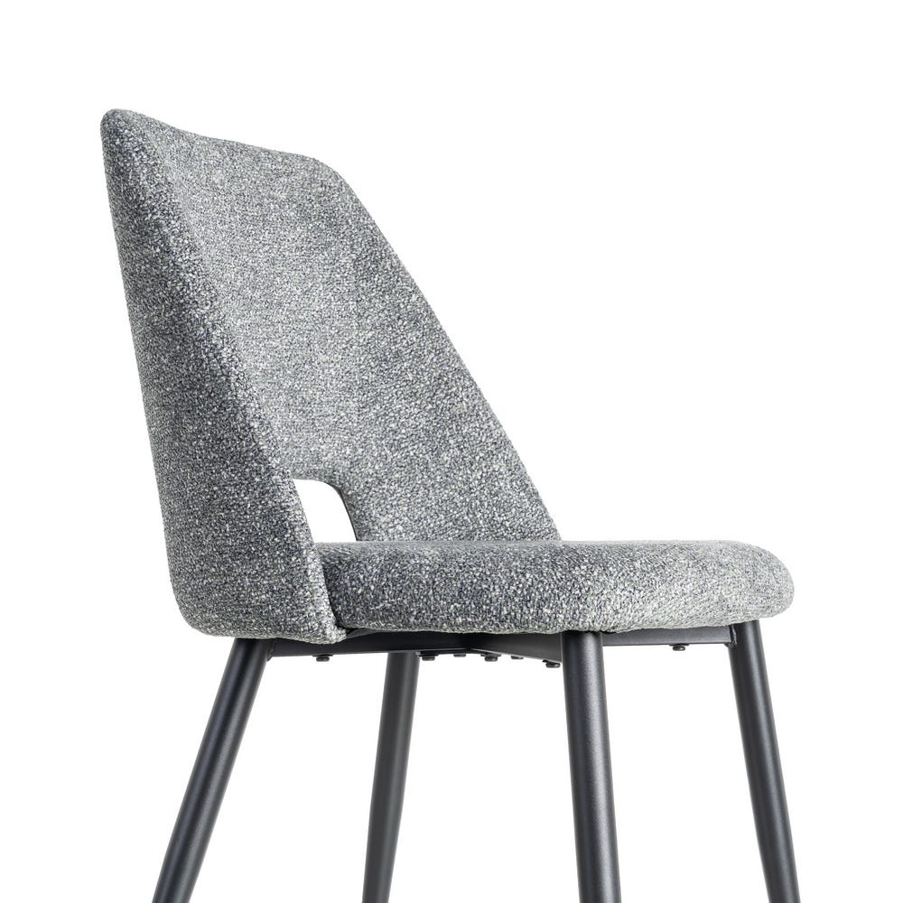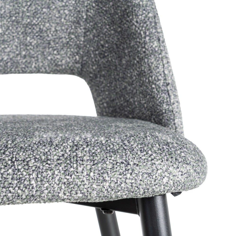 Umplutura bine calibrată și forma curbată a șezutului oferă susținere relaxată, în timp ce picioarele metalice conice mențin stabilitatea fără a încărca vizual spațiul. Țesătura antracit maschează elegant uzura zilnică.