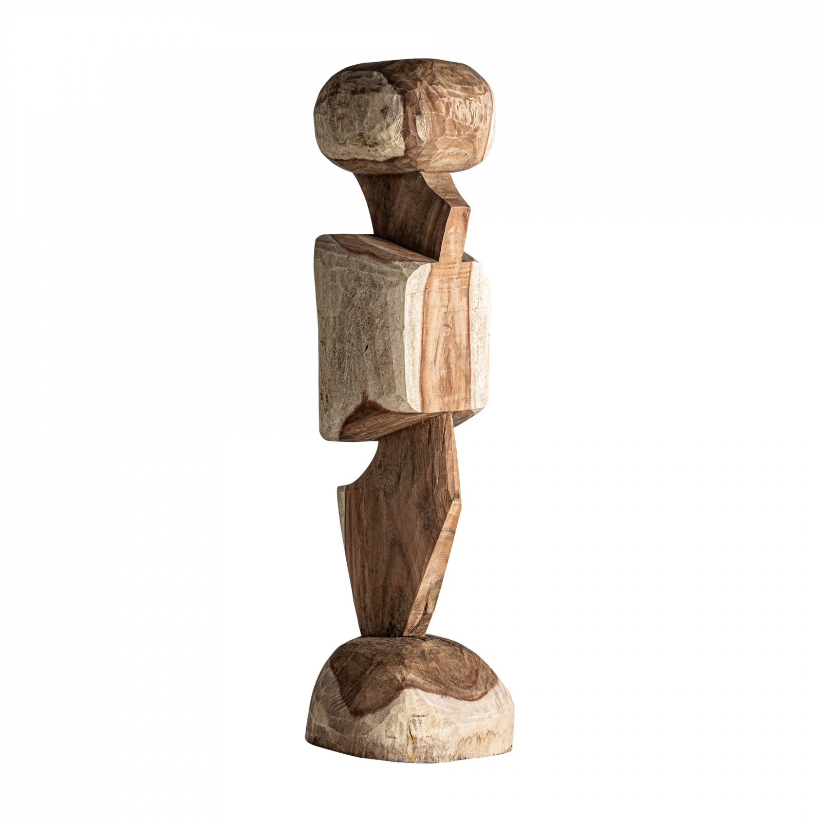 Sculptura Hasan moderna realizata din lemn de tec in nuante naturale de maro. Inaltimea de 160 cm si baza de 50x50 cm creeaza un impact vizual puternic. Lemnul de tec ofera durabilitate exceptionala iar greutatea de 105.3 kg asigura stabilitate perfecta. Ideala pentru livinguri holuri sau birouri unde doriti sa aduceti un accent contemporan dramatic.